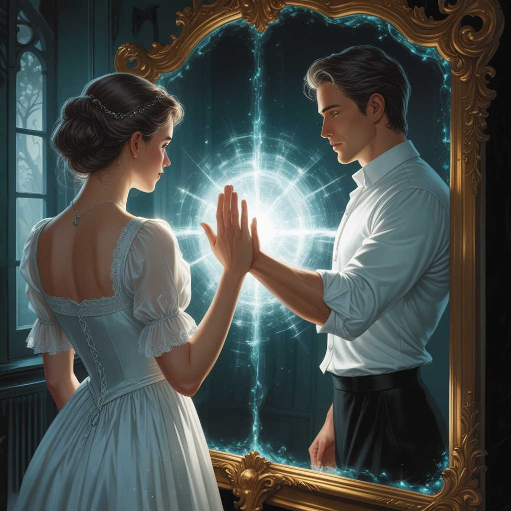 Она медленно подошла к тому самому зеркалу, что когда-то было окном в другой мир. Она смотрела на свое отражение — на бледную, безжизненную девушку в темном платье, с глазами, полными тихого отчаяния.