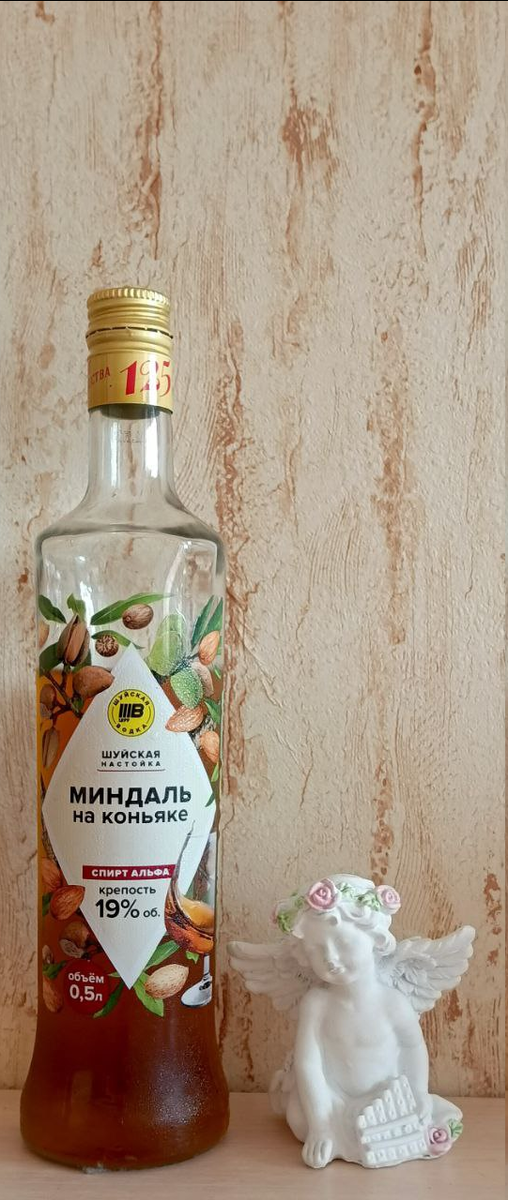 Всем привет от меня, КОньячного Маньяка и наших друзей! Тестирую вторую Шуйскую настойку. Хотел дать их вместе с Малиной, думая, что это два вкуса одной настойки, но решил разделить, ибо Малина была С коньяком, а Миндаль НА коньяке. И в чём же разница? Состав: вода, спирт ректификат Альфа, сироп, морс спиртованный кураги, настой спиртованный миндаля горького, настой спиртованный миндаля сладкого (да они издеваются что ли? В Малине сок и морс, здесь два миндаля разных!), Каньяк ординарный (дистиллят коньячный пятилетний, вода. сироп. колер), настой спиртовой коры дуба (нафига, если есть ординарка?!), колер, настой спиртованный мускатного ореха, натуральная добавка: ароматизатор горький миндаль-Амаретто, настой спиртованный полыни горькой, ароматизатор Миндаль, лимонная кислота. Уф, впечатляет! Сахар 10г\см3. Цвет трёхлетней ординарки. Аромат бомбический! Реально. Ошарашивает точно также, как и в 18 лет, когда купил в ЦУМе настоящий Дисаронно. Да, это истинный аромат Амаретто. Ни отнять
