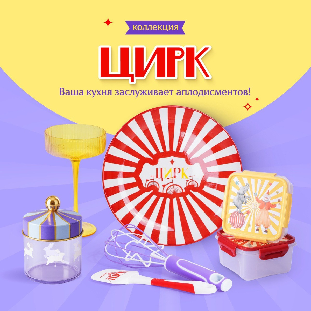 Барабаны гремят, прожекторы горят...🎪 встречайте коллекцию «Цирк»! Ваша кухня заслуживает аплодисментов! 👏 Добро пожаловать в мир, где каждый приём пищи превращается в представление, а привычная готовка в праздник! 🌟 Представьте... На кухне витает потрясающий аромат, звучит весёлая музыка, а настроение, как в зале под куполом цирка! Тарелки — арена, сияют красно-белыми лучами, контейнеры — маленькие шатры, хранят вкуснейшие сюрпризы, а ложки и венчики становятся настоящими артистами Вашего гастрономического шоу. 🎨 ✨ Каждая деталь коллекции «Цирк» наполнена атмосферой чудес: 🟣 Яркие цвета напоминают вспышки софитов и смех зрителей. 🟡Иллюстрации и формы будто переносят в детство — туда, где радость простых моментов искрится, как конфетти под куполом. 🔴Всё продумано до мелочей: от забавных рисунков до волшебного блеска, чтобы каждая трапеза вызывала аплодисменты! 👏 Теперь на Вашей кухне настоящий праздник цвета, форм и настроения.🤡 Посмотреть весь ассортимент можно в магазина