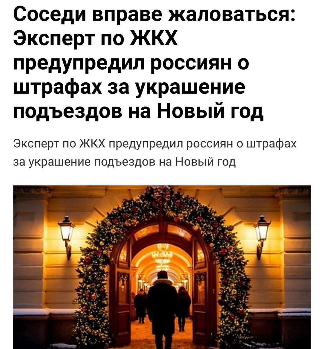🎄 Новогодняя ёлка в подъезде может обернуться штрафом до ₽15 000 — об этом предупреждают эксперты по ЖКХ