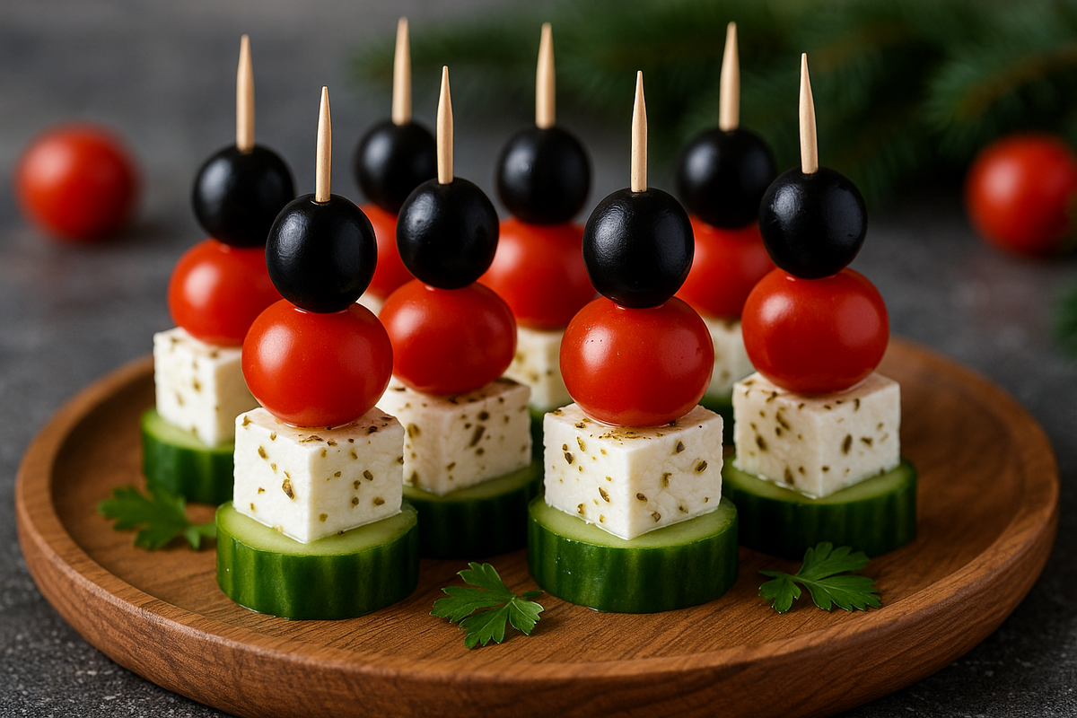 Новогоднее меню — это всегда поиски чего-то вкусного, красивого и при этом несложного. Именно поэтому я обожаю канапе: они выглядят празднично, готовятся быстро и всегда расходятся первыми. Сегодня поделюсь рецептом канапе «Греческое» — яркой, свежей закуски с нотками Средиземноморья. Подробно разберём ингредиенты, этапы, нюансы сборки и варианты подачи. Эта статья подойдёт и новичкам, и тем, кто хочет разнообразить своё новогоднее меню без лишних хлопот. Что такое «Греческие» канапе и почему они идеальны для Нового года «Греческое» канапе основано на классическом салате, который все знают и любят. Только здесь всё красиво нанизано на шпажку: свежий огурец, помидор, маслина и кубик настоящего сыра фета. Закуска получается: яркой и праздничной свежей, не тяжёлой быстрой в сборке бюджетной универсальной — подходит и к мясным блюдам, и к рыбе, и к шампанскому И самое главное — такая подача всегда смотрится выигрышно на новогоднем столе, рядом с более тяжёлыми блюдами. Ингредиенты (на 1