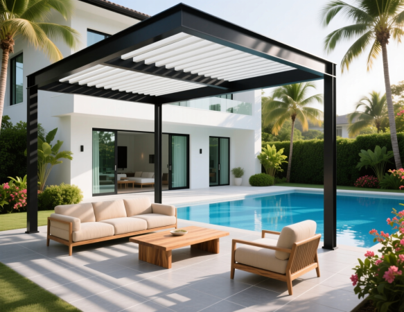 Пергола — это не просто декоративный элемент, а функциональное сооружение, защищающее от солнца и ветра, создающее комфортную зону отдыха. При правильном выборе материалов и уходе конструкции – это долгосрочное вложение. Но насколько на самом деле служит пергола? Слово «пергола» происходит от итальянского pergula — «пристройка» или «навес». Ещё в Римской империи такие конструкции использовали для поддержки виноградных лоз. Современные перголы эволюционировали в сложные архитектурные системы с возможностью регулирования уровня света, теней и контроля микроклимата. В отличие от беседок, пергола создает естественную циркуляцию воздуха даже в безветренную погоду за счет эффекта Вентури. Преимущества: Недостатки: Алюминиевые перголы особенно рекомендуются для регионов с суровым климатом — они не деформируются от перепадов температуры. Изготавливаются из нержавеющей стали, оцинкованной стали или кованого железа. Преимущества: Недостатки: Климатические условия: Качество установки: Уход и обс