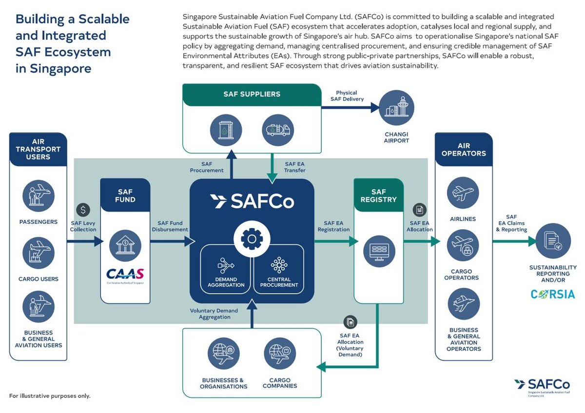 Сингапур стал первой страной, которая ввела сбор с пассажиров за экологически чистое топливо Начиная со следующего года, пассажиры, вылетающие из Сингапура, будут платить сбор за экологически чистое топливо в размере до 41,60 сингапурского доллара ($31,95). Новый налог будет диверсифицирован по классу билетов, где пассажиры эконома будут платить меньше пассажиров бизнес-класса. Сбор на экологически чистое авиационное топливо будет применяться к билетам, проданным с 1 апреля на рейсы, вылетающие из Сингапура с 1 октября. Собранные с пассажиров средства пойдут на централизованную закупку экологически чистого авиационного топлива. Для централизованных закупок экологически чистого авиационного топлива (SAF) для сингапурского авиаузла Управление гражданской авиации Сингапура учредило компанию Singapore Sustainable Aviation Fuel Company. Ранее крупнейшие европейские авиакомпании объединённые группой «Авиалинии для Европы» (A4E) поставили под сомнение осуществимость поставленных целей по
