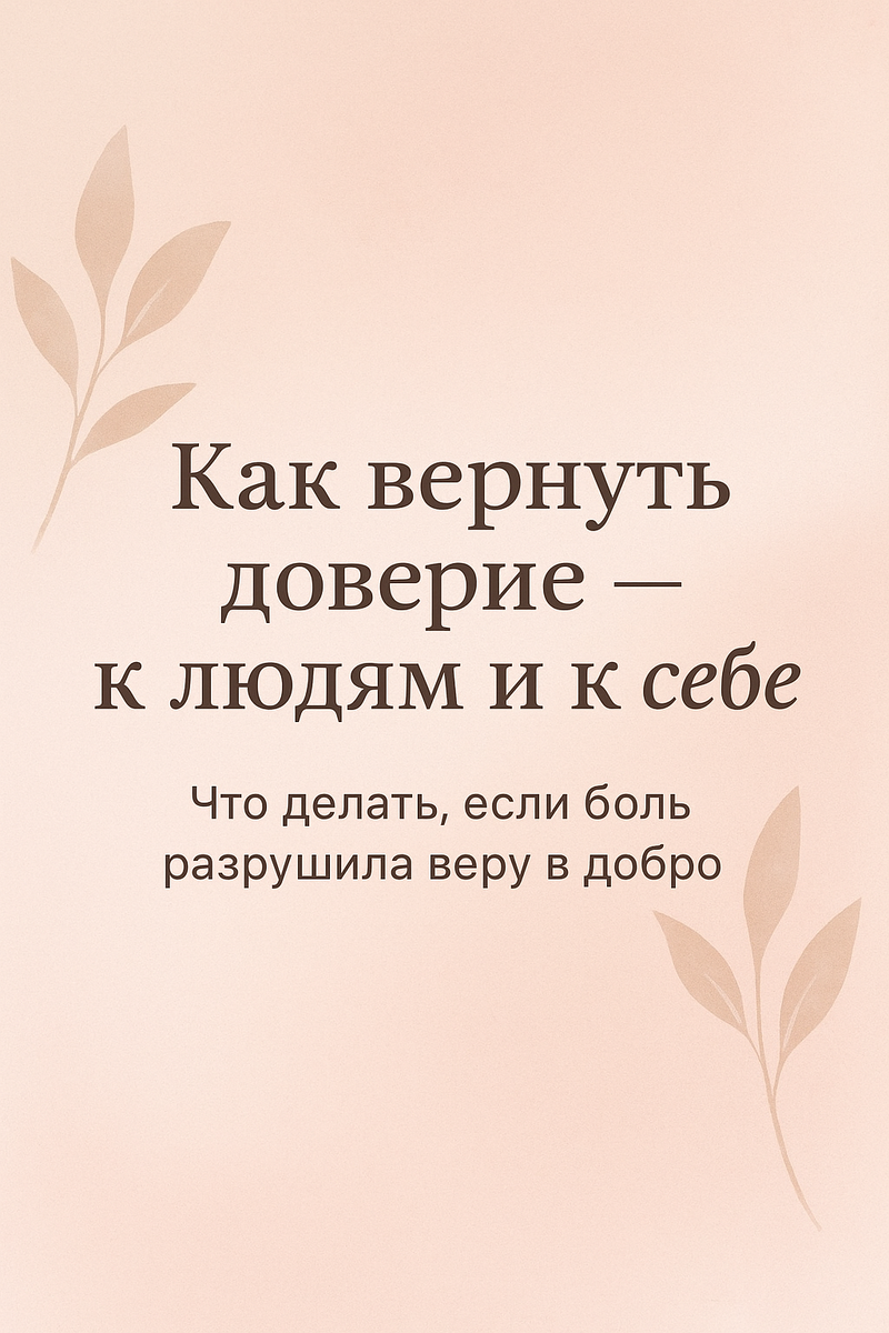 🌿 Как вернуть себе доверие — к людям и к себе Когда прошлое заставило сомневаться во всём, даже в себе самой После тяжёлых или абьюзивных отношений многие люди замечают, что им сложно снова доверять — не только другим, но и себе. Каждое новое знакомство вызывает тревогу, любое внимание кажется подозрительным, а собственные решения — ошибочными. Это естественно. Когда тобой манипулировали, обесценивали или предавали, психика учится выживать. И чтобы защититься, она выстраивает броню: «Больше никому нельзя верить». Но эта броня не спасает — она лишает близости, тепла и радости. Вернуть доверие — значит позволить себе жить снова. Не наивно, не вслепую, а осознанно. Недоверие — не порок. Это реакция на отсутствие безопасности. Когда человек живёт в страхе быть снова обманутым, его мозг в постоянной готовности к угрозе. Отсюда тревожность, контроль, излишняя осторожность. 👉 Что делать: Многие путают доверие с уязвимостью: «Если я откроюсь — меня снова ранят». Но доверие — это не беззащи