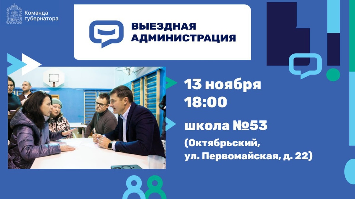 Владимир Волков проведет встречу с жителями в формате выездной администрации Встреча с жителями г.о. Люберцы в формате выездной администрации пройдет в четверг, 13 ноября, в школе №53 в п. Октябрьский (ул. Первомайская, д.22). На встрече можно задать интересующие вопросы всем ответственным лицам. Начало в 18.00. 👉Для более эффективной работы администрации, жители г.о. Люберцы могут заполнить форму https://forms.yandex.ru/u/682710b5d04688ba77a81f8b/. ✅ Присоединяйся к каналу в MAX #Люберцы @VM_Volkov