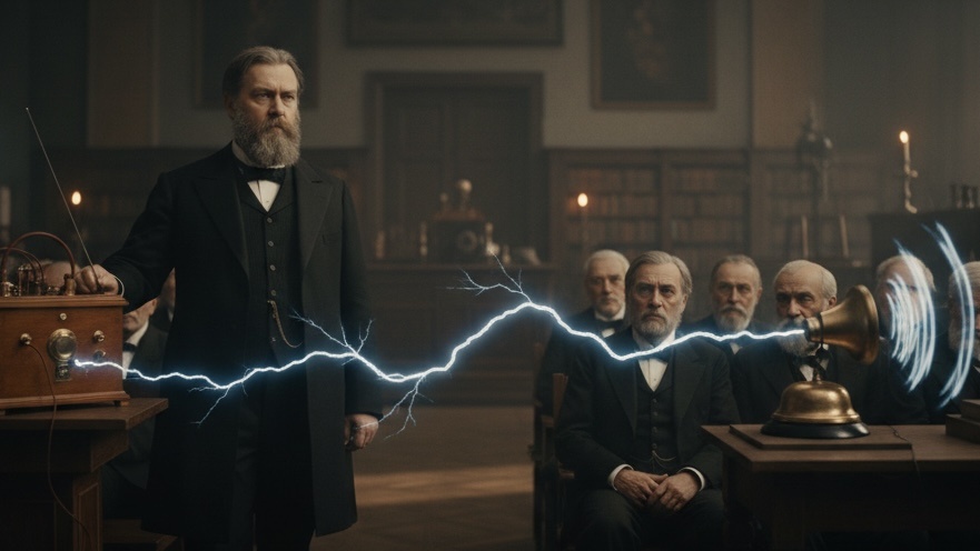 Представь себе душный зал заседаний Русского физико-химического общества в Петербурге, 7 мая 1895 года. На трибуне стоит преподаватель Минного офицерского класса Александр Попов. Он показывает странный ящик, который называет «грозоотметчик». В зале – вежливый академический скепсис. Попов включает свой передатчик – искровой генератор. Щелчок! Искровой разряд. И вдруг... в другом конце зала, в «приёмнике», оживает электрический звонок. Он звонит, отлавливая волну, пролетевшую по воздуху. В тот момент мало кто понял, что это не просто фиксация грозы. Это была первая в России публичная демонстрация радиосвязи. Что за магия в коробке? «Сердцем» прибора Попова был когерер – по сути, стеклянная трубка с металлическими опилками, которую до него использовали Бранли и Лодж. В обычном состоянии у опилок высокое сопротивление. Но как только на них попадает электромагнитная волка – бац! – они «слипаются», сопротивление резко падает, и в цепи начинает течь ток. Этот ток и включал реле, которое, в