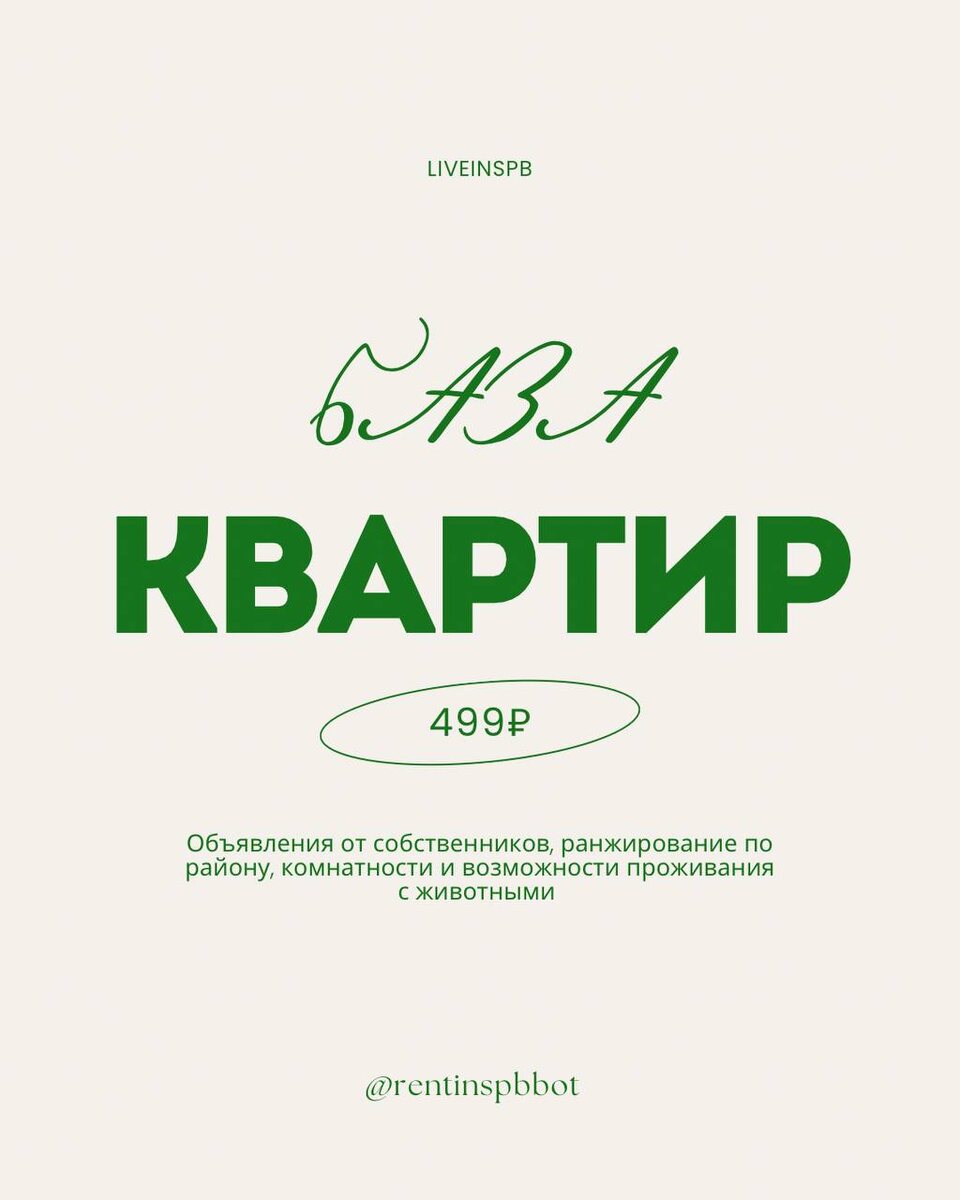 🏠 Хочешь снять квартиру в СПБ — без обмана и нервов? Тогда тебе нужен доступ к базе проверенных квартир от собственников. 🔍 Мы собрали всё, что ты ищешь: — без риэлторов — без комиссии — с ремонтом — и даже с допуском для питомцев 🐶🐱 ⚠️ Хватит терять время на фейковые объявления. Подпишись на базу за 499₽ в месяц — и получай актуальные предложения каждый день. 👉 Перейди в Telegram бот @rentinspbbot