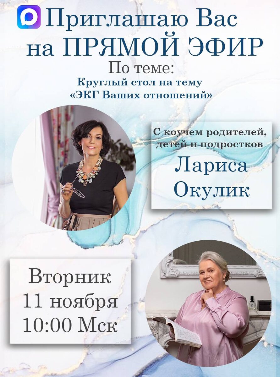 В этот раз хотим провести Прямой эфир в виде Круглого стола. То есть приглашаем всех к активному участию в беседе. Почему такое название? Расшифрую: Э — Эмоции К — Коммуникации Г — Границы ЭКГ ваших отношений