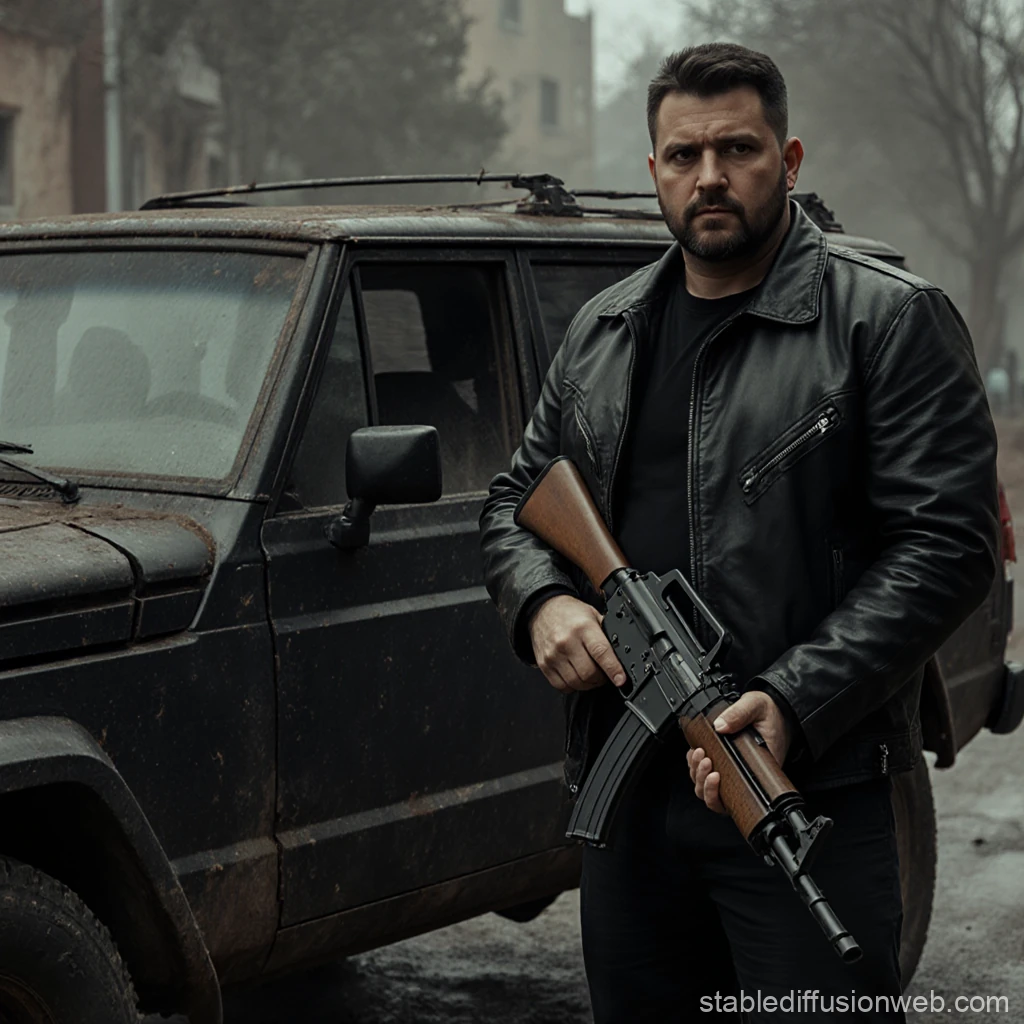 Подбежал Артём с черной сумкой и с калашниковым наперевес.