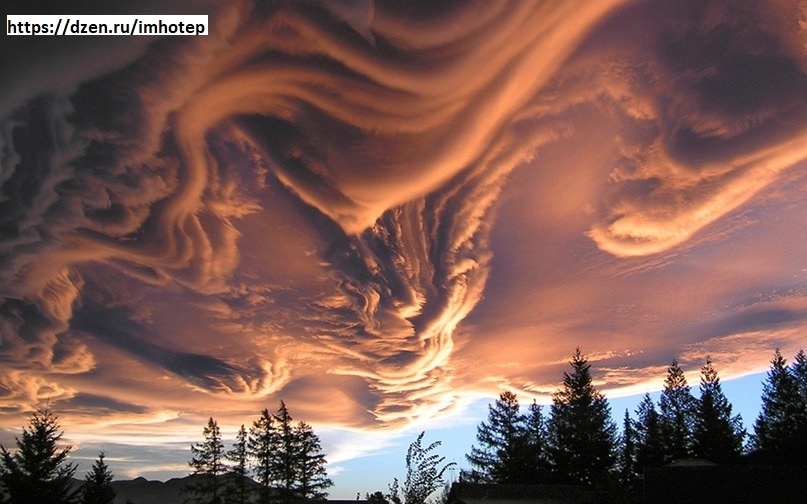 Здравствуй уважаемый читатель! Представляю историю под редакцией «Имхотепа». Очень необычные облака, которые называют Асператус. Очевидцы рассказывают, что, глядя на такие облака создается ощущение что просто лежишь на дне моря и смотришь на шторм, который бушует. Асператус это название на латыни, дословно переводится как шероховатые либо волнисто-бугристые. Это очень редкий тип облаков, очевидцы говорят, что они имеют просто дьявольский вид. Такие облака увидели очень давно в пятидесятые года двадцатого века. Метеорологи заметили их в Великобритании, а также в Новой Зеландии. Они были темно-синего цвета, почти черные. По виду они больше напоминают штормовое море. Зрелище очень завораживает, впечатлит любого. Многих людей такие облака пугают, они появляются обычно перед каким-то природным катаклизмом. С момента первого обнаружения данного типа облаков прошло уже 70 лет, но ученные так и не могут точно объяснить, как они формируются, но какие-то выводы определенно сделали. Интересный фа