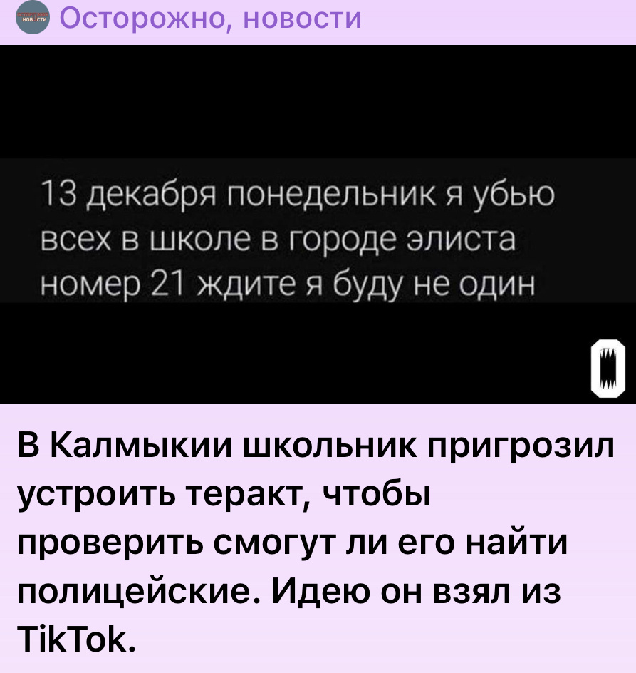 А также сами пытаются придумать и снять яркие видео, чтобы зацепить подписчиков и собрать охваты и лайки. Цифровая валюта для них становится ценнее, чем реальные деньги. И что получается? Что 2000 лет назад, что сейчас — предпочтения не изменились: «Хлеба и зрелищ» требует толпа. А арена Колизея — это TikTok. Вот и получаем такие новости: – Девочка ударила полуторагодовалого ребёнка и станцевала танец — всё на камеру. Девочке нет 14, она отделалась выговором и постановкой на учёт. – Парень пришёл в школу с камерой GoPro на груди и ножом в руках — снимал своё нападение и транслировал видео в сеть в реальном времени. – Дети делают себе ожоги дезодорантами и лаками для волос на теле. – Дети продолжают делать подножки во время прыжков. – Дети пьют «Кока-Колу» и заедают «Ментосом». Мы все между собой согласны — детей нельзя оставлять без внимания. Мы все понимаем, что родительство — это время, внимание и усилие. А не «раз сказал — и роботы пошли строем». Надеюсь, мы все понимаем, что нет од