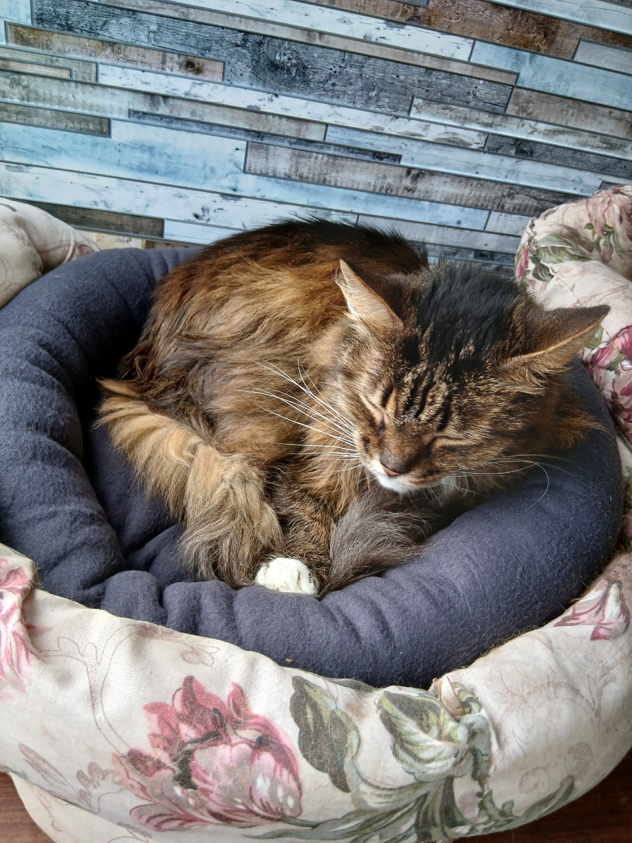 Здравствуйте, горжусь собой, ведь мой человеческий гений победил кота. Тихон у нас консерватор и ретроград, не признает новые лежанки, обижается, в упор не замечает новую и вообще делает вид, что он бесхозный котик, которому теперь негде и приткнуться. А сколько раз можно пытаться привести в чувство очень старую лежанку? Надоело! Поэтому я купила флисовую лежаночку и воткнула её в старую. Представляю как Тихон лапкой чесал свою репку и думал, что это за пипидастр такой. Но моё жульство имело успех)), спит как миленький)). А старую выкину позже, надеюсь все получится. Обзор из секонда, всё можно было купить со скидкой 60%. Не знаю как назвать, то ли лёгкое пальто, то ли это плащ. 98% хлопка и синтетика Плащ из искусственной замши, есть большой воротник, но нет пуговиц, просто запахнулась и завязалась). Полная цена 2300 руб. Длинная рубашка, но использовать её будет правильно как лёгкий жакет. Ткань в косой рубчик, металлические пуговицы и паты на рукавах. 1800 руб. Полосатый джемпер,