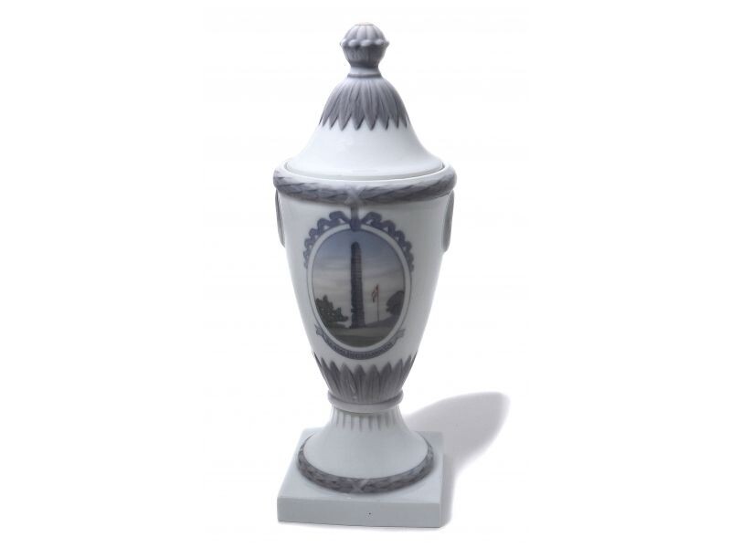 Фарфоровая ваза (кубок) с крышкой. Royal Copenhagen Фарфоровая ваза (кубок) с крышкой на основании "Скамлингсбанкен". Ручная подглазурная роспись. Скамлингсбанкен - большой холм, расположенный в Дании, между г. Колдингом и г. Кристиансфельдом . Пик высотой 113 метров над уровнем моря является самой высокой точкой Южной Ютландии. Дания, Копенгаген, Royal Copenhagen, 1923-1928 гг. Дизайн росписи: 2228. Номер модели: 2007. "70" - порядковый номер художника J. Engelstoft, расписавшего вазу, работал на фабрике с 1897 по 1931 гг. Клеймо производителя. Максимальная высота: 34 см, высота по край: 24,7 см, диаметр верха: 12,5 см. Ваза первого сорта. На основании несколько темных точек (угольные вкрапления). Без сколов, реставраций и повреждений. Royal Copenhagen, 1923 Стоимость лота: 250 000,00 ₽ Подробнее на нашем сайте