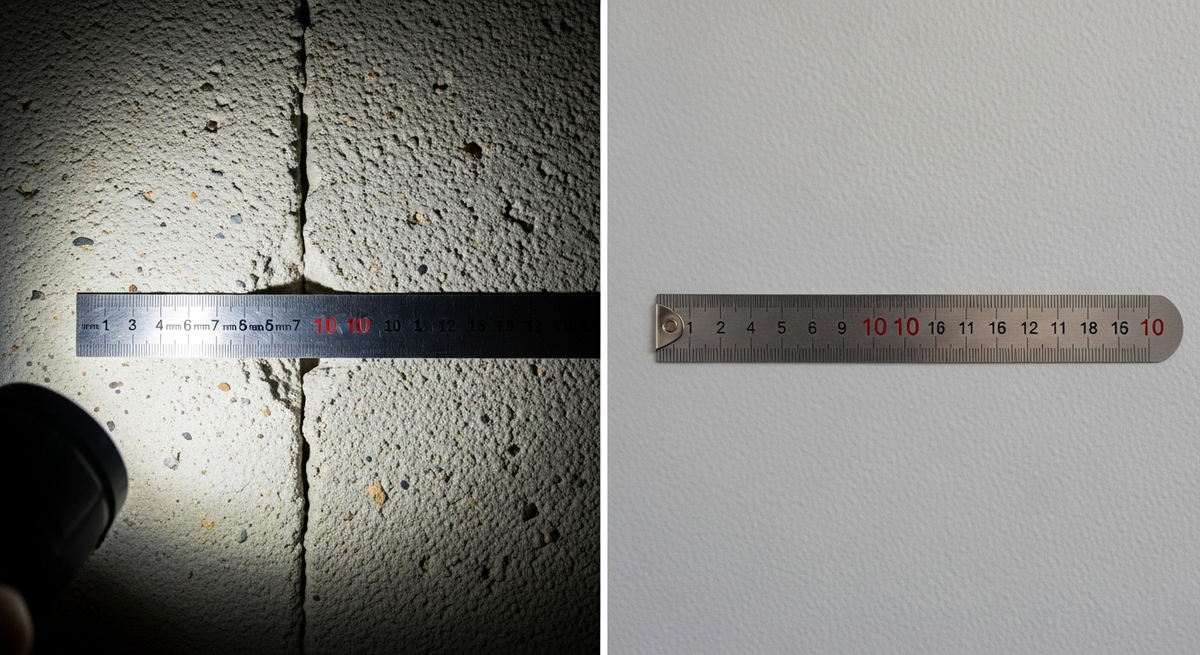 Как это выглядит: Визуально стена кажется ровной. Но если приложить двухметровую рейку — видны перепады, ямки, бугорки.