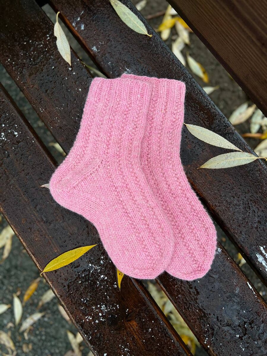Носочки из Рассказовского мериноса 🩷 Одна из трех пар, которые вы увидите в новом носочном влоге Эти носочки связаны на заказ, для сна и хорошей циркуляции крови ✨ Обожаю как эта пряжа выглядит после вто, просто волшебство 🪄