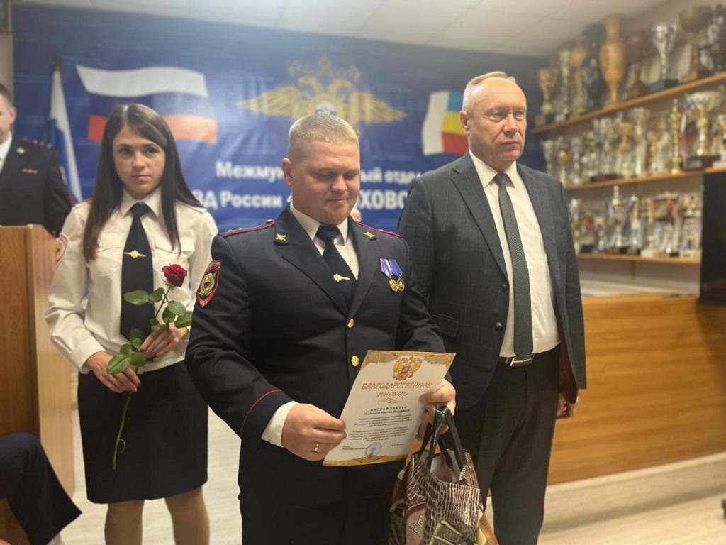 Заместитель главы администрации Верхнедонского района Владимир Фомичев принял участие в торжественной церемонии награждения сотрудников отделения полиции (дислокация ст. Казанская) МО МВД РФ «Шолоховский». Он поблагодарил сотрудников отделения полиции за нелёгкий и ответственный труд, за мужество, самоотверженность и преданность долгу и от лица главы Верхнедонского района пожелал всем крепкого здоровья, благополучия, счастья в семьях и дальнейших успехов в важной и нужной работе на благо Отечества! «Ваша служба – это залог стабильности, безопасности и спокойствия в каждом населённом пункте нашего района», – отметил В.Фомичев. Ранее сообщалось, что в Верхнедонской гимназии прошел урок Памяти в честь сотрудников МВД