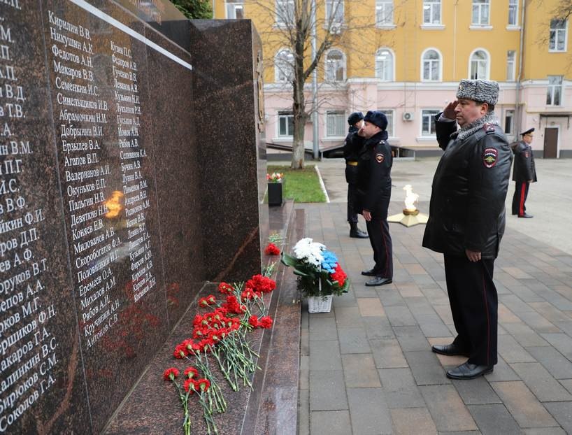 В Управлении МВД России по Рязанской области прошли торжественные мероприятия, посвященные Дню сотрудника органов внутренних дел России. Торжественные мероприятия, посвященные Дню сотрудника органов внутренних дел Российской Федерации, по традиции начались с возложения цветов к Мемориалу сотрудникам органов внутренних дел Рязанской области, погибшим при выполнении служебных обязанностей и на фронтах Великой Отечественной войны. Мемориал с вечным огнем и стелой, на которой высечены имена погибших сотрудников, расположен на территории Управления МВД России по Рязанской области. Память погибших сотрудников почтили минутой молчания. Цветы к Мемориалу возложили начальник УМВД России по Рязанской области генерал-майор полиции Владимир Алай, председатель Общественной организации ветеранов органов внутренних дел Рязанской области полковник милиции в отставке Валерий Матвеенко, заместители начальника УМВД и руководители структурных и строевых подразделений Управления. Возложение цветов сопровож