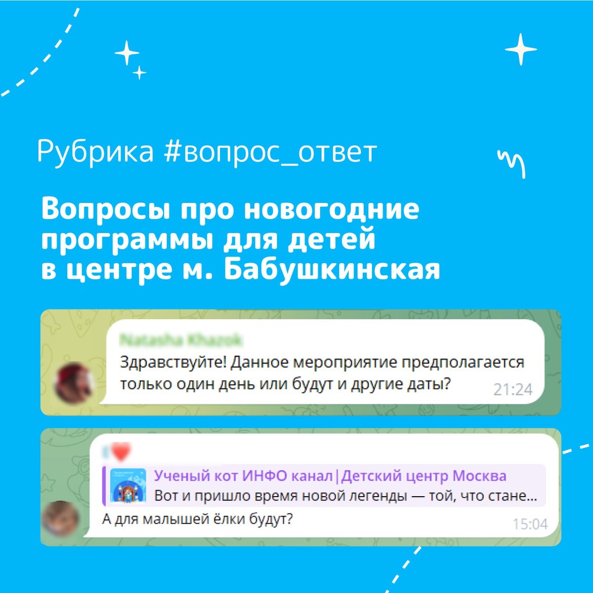 Вы часто спрашиваете будут ли елки в другие дни. Отвечаем: Каждая елка и спектакль запланирован один день и проходит в определенную дату и только один раз — это делает каждое событие по-настоящему особенным и уникальным! Успейте забронировать место. Но хорошая новость! В Декабре запланирована разнообразная новогодняя программа для детей 2-12 лет и вы можете выбрать праздник в удобную дату. 🎄13 декабря - Спектакль-елка «Снежики в городе Снежность» для детей 2-6 лет 🎄 20 декабря - Елка-квест «Операция «Смородина» в формате ролевой игры для детей 8-12 лет 🎄 21 декабря - Елка-квест «Берендеева Ёлочка» для детей 3-8 лет 🎄 27 декабря - Спектакль-елка «Щелкунчик и мышиный король» для детей 2-6 лет 🎄 28 декабря - Ёлка с Дедом Морозом и Снегурочкой и кукольный спектакль «Мороз- красный нос» для детей 2-8 лет Выбирайте событие по душе! 😎 👉👉👉 Все подробности на сайте А если нужна помощь — пишите нашим администраторам, они всегда подскажут! 💫 Администраторы 📞 Позвонить +74959688