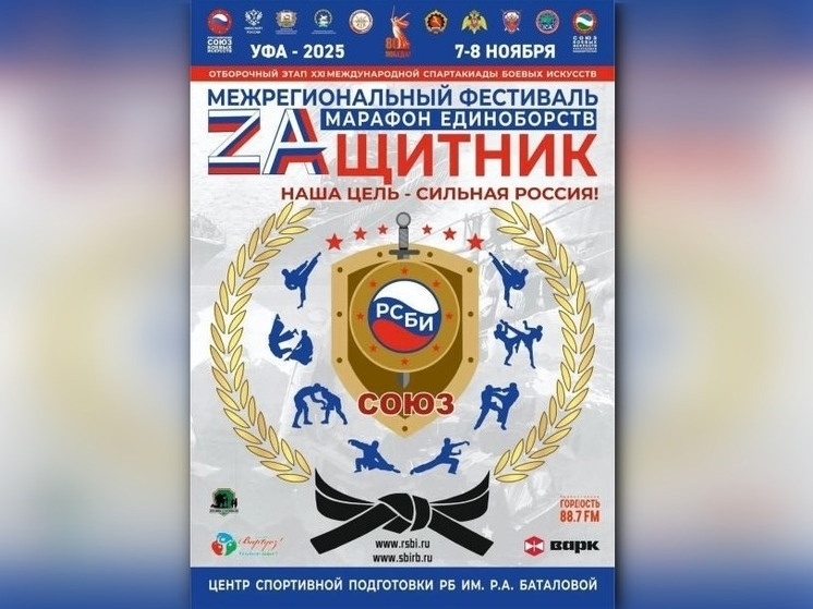 Более 2000 спортсменов из Приволжского и Уральского федеральных округов собрались в Центре спортивной подготовки РБ для участия в соревнованиях по различным видам боевых искусств 8 ноября в Центре спортивной подготовки Республики Башкортостан имени Римы Баталовой состоялась торжественная церемония открытия межрегионального фестиваля боевых искусств «Марафон единоборств «ZАщитник», организованного филиалом «Российского Союза боевых искусств» по Республике Башкортостан при поддержке министерства спорта региона. Как сообщает пресс-служба мэрии, проект направлен на пропаганду здорового образа жизни, гражданское и патриотическое воспитание молодежи, а также на совершенствование физкультурно-массовой и спортивной работы на местах. В фестивале принимают участие около 2000 спортсменов из регионов Приволжского и Уральского федеральных округов. В программу мероприятия вошли соревнования, фестивальные программы и показательные выступления по различным дисциплинам, включая всестилевое каратэ, боев
