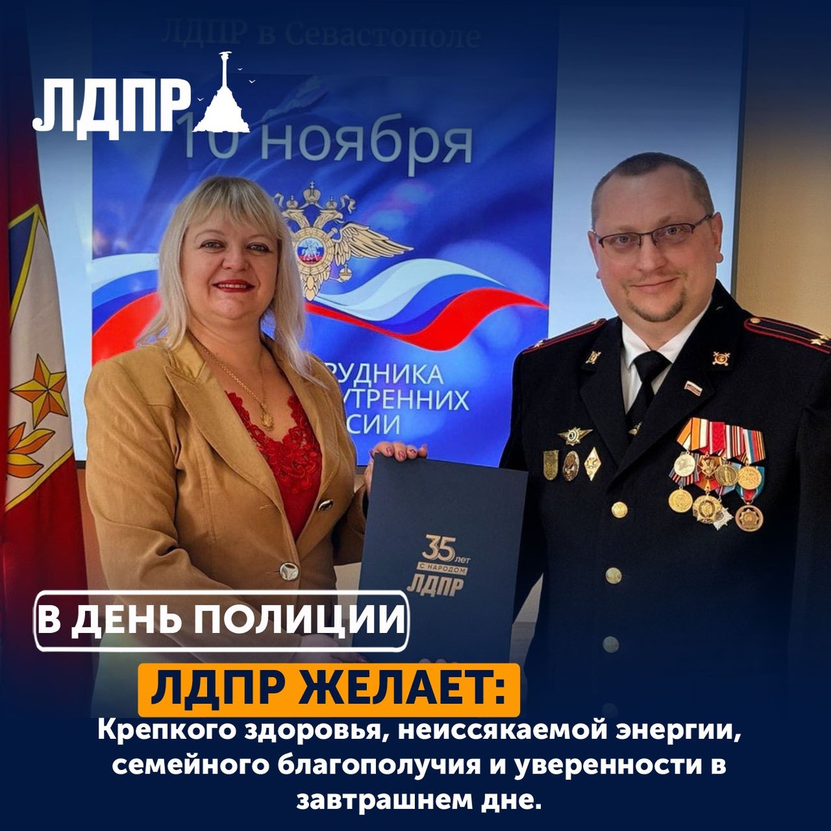Активисты Севастопольского отделения ЛДПР поздравили сотрудников органов внутренних дел с профессиональным праздником В День полиции активисты Севастопольского отделения ЛДПР лично поздравили причастных к этому профессиональному празднику. Эта профессия требует особого призвания — ее выбирают сильные духом, принципиальные и мужественные люди, для которых долг, честь и защита закона являются не просто словами, а жизненной позицией. Ежедневно они демонстрируют высокий профессионализм, ответственность и самоотверженность, стоя на страже правопорядка и спокойствия граждан. Севастопольское отделение ЛДПР от всей души желает сотрудникам и ветеранам органов внутренних дел крепкого здоровья, неиссякаемой энергии, семейного благополучия и уверенности в завтрашнем дне.