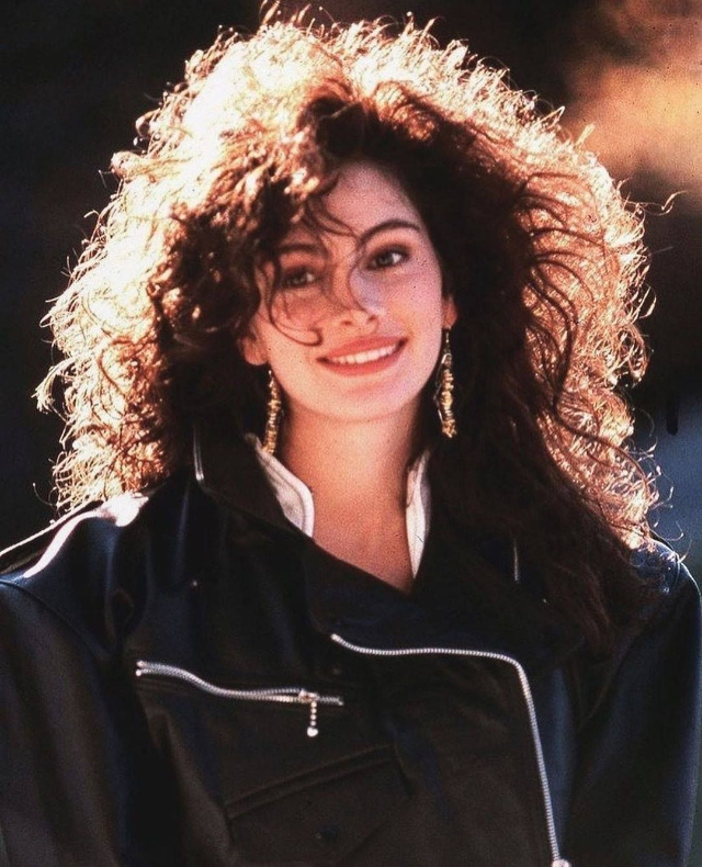 В конце 1980-х годов Джулия Робертс (родилась 28 октября 1967 года) стала одной из самых перспективных новых звёзд Голливуда. Этот период ознаменовал её прорыв и начало пути к международной славе. Известная своими ниспадающими каскадом объёмными кудрями и широкой лучезарной улыбкой, Робертс воплощала собой свежую, открытую красоту, которая находила отклик у зрителей. Её образ был непринуждённым, часто склоняясь к расслабленному, слегка богемному стилю. Джинсы, свободные блейзеры и минимум макияжа были отличительными чертами её повседневного стиля, который контрастировал с более гламурными образами, которые она иногда надевала для красных дорожек. Свою первую роль в кино она получила в фильме «Удовлетворение» (1988), сыграв участницу рок-группы вместе с Джастин Бейтман и Лиамом Нисоном. Хотя фильм не стал хитом, он подарил Робертс первую голливудскую известность. Она также снялась в фильме «Мистическая пицца» , который стал её прорывом. Её исполнение роли Дэйзи Аруджо — энергичной молод