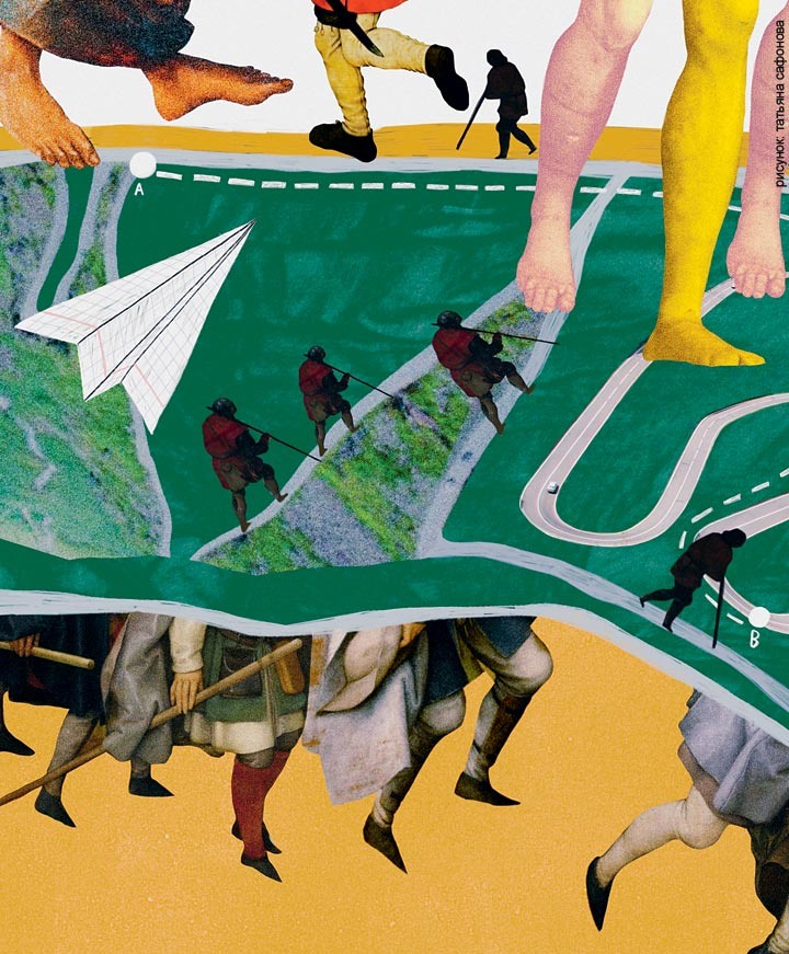В своем обхождении главной темы номера — «Поход» — шеф‑редактор «РП» Игорь Мартынов не только попутно встречает ходоков‑классиков, но и на ходу перекидывается словом с профессором‑семиотиком, который много чего о дороге и по дороге понял. Путешествие, поход, «охота к перемене мест» — на русском все это будут «хождения»: купца Афанасия за три моря, купца Федота Котова в Персию, гостя Василия в Египет… Выбор ходов обширен, есть тебе и «Похождения Чичикова», и многотомно-монотонные «Хождения по мукам». У хождений нет простоватой цели угодить из пункта А в пункт Б. Хождения (аутентичнее — «хожения») — акт не вполне физический, но духовный, интеллектуальный, даже ритуальный. Ходоки — среда, где зарождалась свобода. Культуролог-семиотик Юрий Лотман подмечает: «В Средние века возникают определенные группы — на Руси их называют изгоями. Они как-то не пригрелись в обществе, они в каждой среде — чужие, им неуютно, они — критики. Они, конечно, тоже далеко не всегда идеальны. Разбойный элемент сли