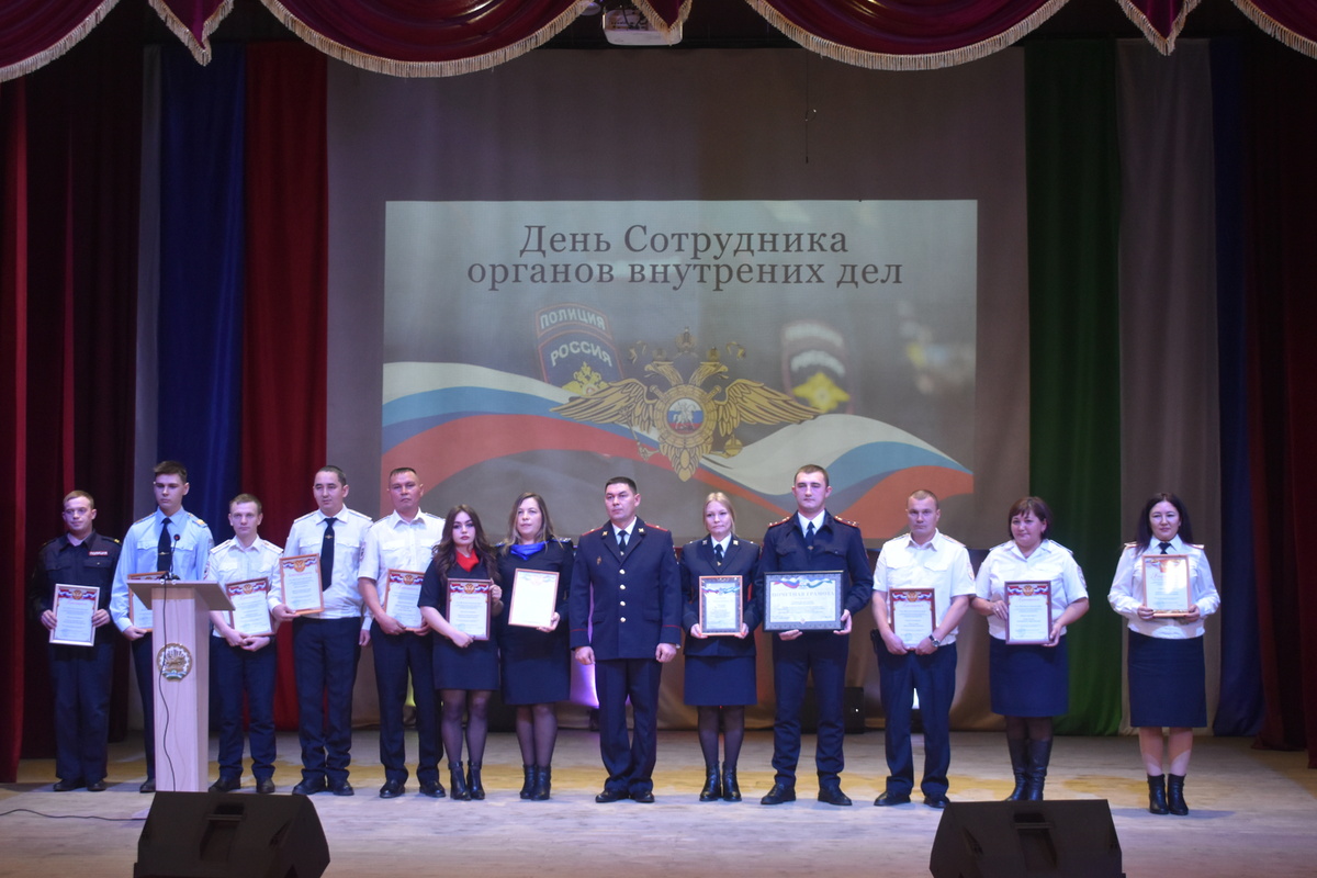 Торжественное мероприятие состоялось во Дворце культуры с. Месягутово Сегодня во Дворце культуры с. Месягутово состоялось торжественное мероприятие, посвященного Дню сотрудников внутренних дел Российской Федерации. Со словами поздравления к личному составу обратились заместитель главы Администрации района по финансовым вопросам Джамиль Муниров, начальник отдела МВД России по Дуванскому району, майор полиции Роберт Маннанов. Торжественное мероприятие продолжилось церемонией награждения. Отличившимся стражам порядка вручены ведомственные награды, Почетные грамоты и Благодарственными письма, присвоены очередные специальные звания. Награждение сопровождалось музыкальными номерами, подготовленными участниками художественной самодеятельности. Подробнее в газете от 14 ноября.