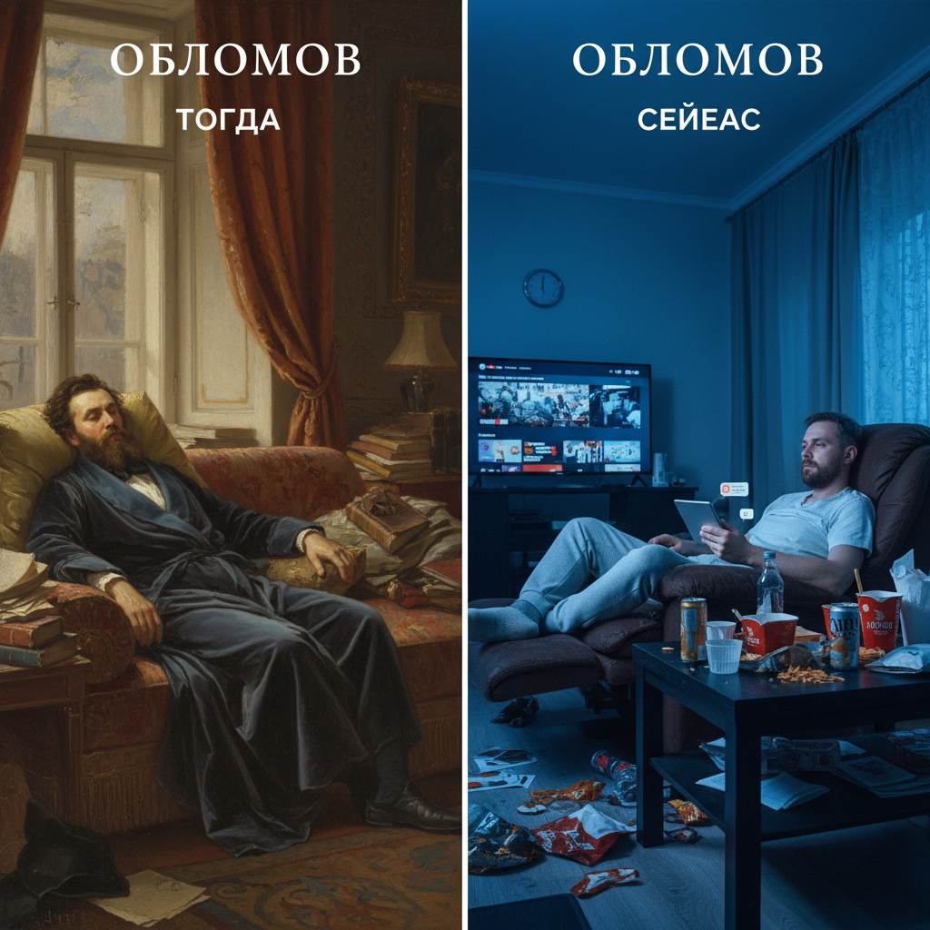 ⌛Призрак-ретро: Илья Ильич Обломов – отец всех «маминых сынков»! (Он тоже любил диван, но без вайфая!) Думаете, ваш «Призрак» уникален, прячась за мамину юбку? Ха! Встречайте его прадедушку – Илью Ильича Обломова, героя Гончарова. Этот русский барин — мастер ничегонеделания, чья жизнь протекает на диване в мечтах, пока слуги (и друзья) пытаются расшевелить его вялую натуру. Он был «маминым сынком» еще до того, как это стало мейнстримом! Обломов и Призрак: Найдите 10 отличий (спойлер: их нет!) 1. Кредо по жизни: «Лежать – наше всё!» 2. Детство с «маминой» гиперопекой: Когда мир вертелся вокруг одного дивана. 3. Отношения? А зачем, если есть диван (и мама)? Вывод моего Сценариста: Илья Ильич Обломов — это Призрак, который так и не освоил современные гаджеты. Методы медленнее, но суть та же: полная зависимость и неспособность к взрослой жизни и отношениям. Ваш Призрак — просто его цифровое эхо. Пора выписывать этот «обломовский» сценарий! Читали «Обломова»? Узнали «Призрак