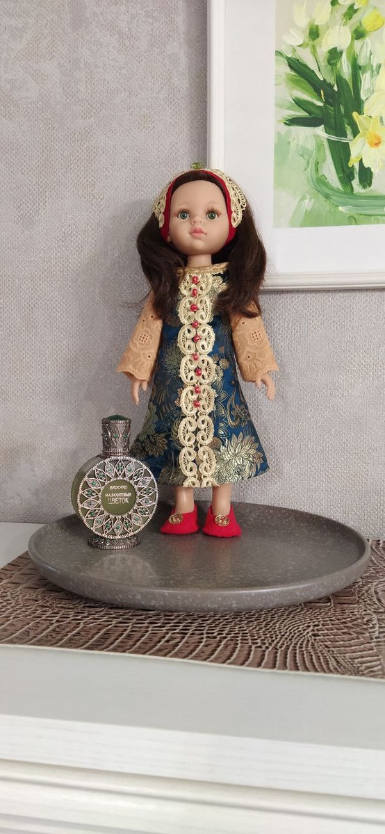 Полюбовалась я Дашей в образе Красной шапочки и решила продолжить превращать своих Паолок в интерьерные куклы. Очередь из кукол у меня как-то сама собой организовалась. Даша – первопроходец, Саша – золотая середина, а Лулу второе дыхание в моих творческих потугах. Никак не привыкну, что к Новому году магазины, рекламщики и прочие блогеры начинают готовиться с конца октября. Вот и мне в ленте Дзена попалась реклама прелестных куколок в русских нарядах, куколок-снегурочек. Работы были просто шикарные, я и сама подумывала о русском костюме, тем более у меня есть два настоящих павло-посадских платка для кукол. Нет, платок изначально был вполне себе женский, я носила его вместо шарфа, вообще люблю павло-посадскую продукцию от больших шалей и палантинов из шерсти до шейных крепдешиновых платочков. А вот когда платок несколько утратил первоначальную яркость рисунка, даже вытерся на сгибе в середине, я не смогла его просто так выбросить. Из двух наиболее ярких углов сделала маленькие косынки,