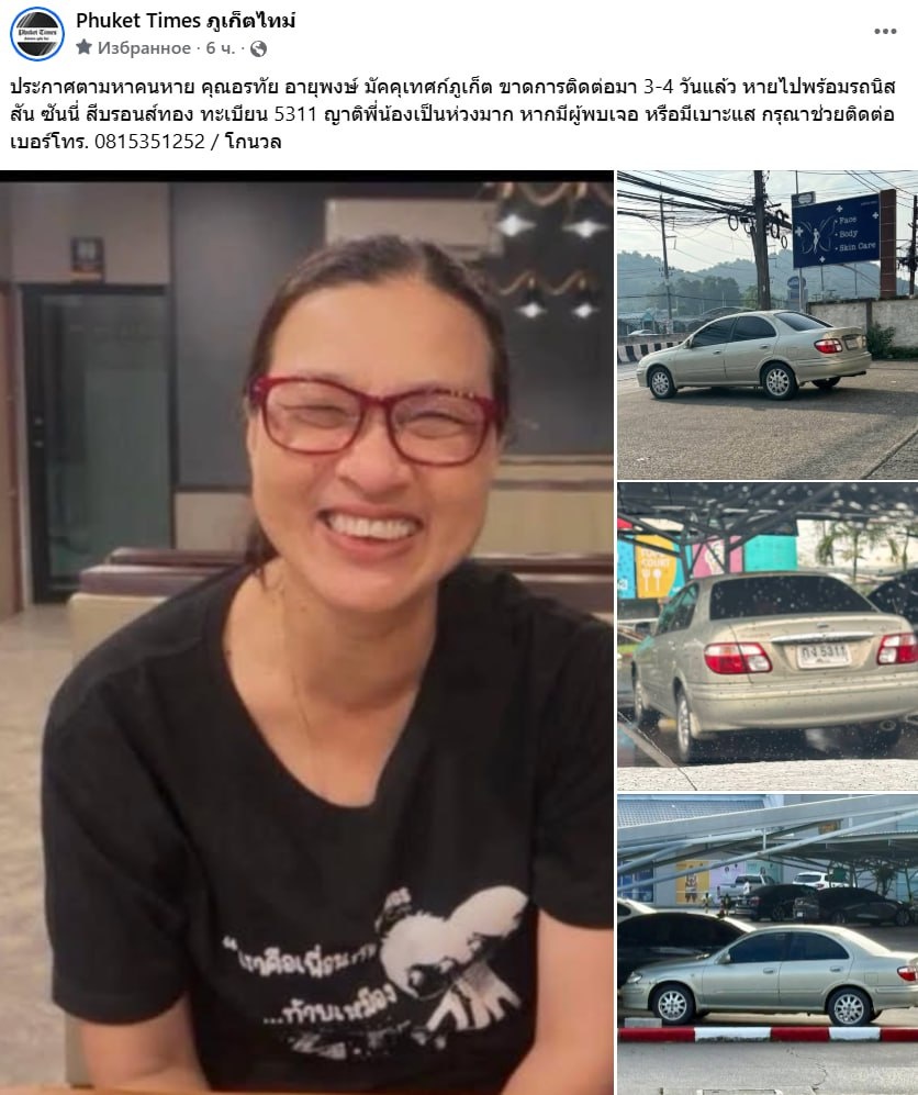 Сегодня днем в местном паблике было объявление о пропаже тайского гида которая так же являлась президентом ассоциации тайских гидов, она