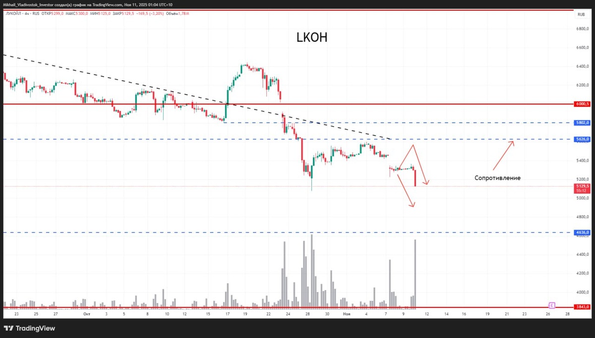 В ответ на пост Лукойл $LKOH -3,5% после очередной негативной новости. Идем на тест минимума 5077. Да и вся нефтянка тянет рынок вниз. Завтра в видео обзоре будем разбираться ИРАК ЗАМОРАЖИВАЕТ ПЛАТЕЖИ "ЛУКОЙЛУ" ЗА НЕФТЬ, ПОСКОЛЬКУ БАГДАД ИЩЕТ ЗАКОННЫЙ СПОСОБ СОХРАНИТЬ РАБОТУ МЕСТОРОЖДЕНИЯ ЗАПАДНАЯ КУРНА-2 ЛУКОЙЛ ПРЕКРАЩАЕТ РАБОТУ ИНОСТРАННОГО ПЕРСОНАЛА НА МЕСТОРОЖДЕНИИ ЗАПАДНАЯ КУРНА-2 ЛУКОЙЛ ОБЬЯВИЛ О ФОРС-МАЖОРНЫХ ОБСТОЯТЕЛЬСТВАХ НА ИРАКСКОМ МЕСТОРОЖДЕНИИ ЗАПАДНАЯ КУРНА-2 – ИСТОЧНИКИ RTRS ЛУКОЙЛ объявил форс-мажор на одном из крупнейших месторождений в мире #LKOH #лукойл