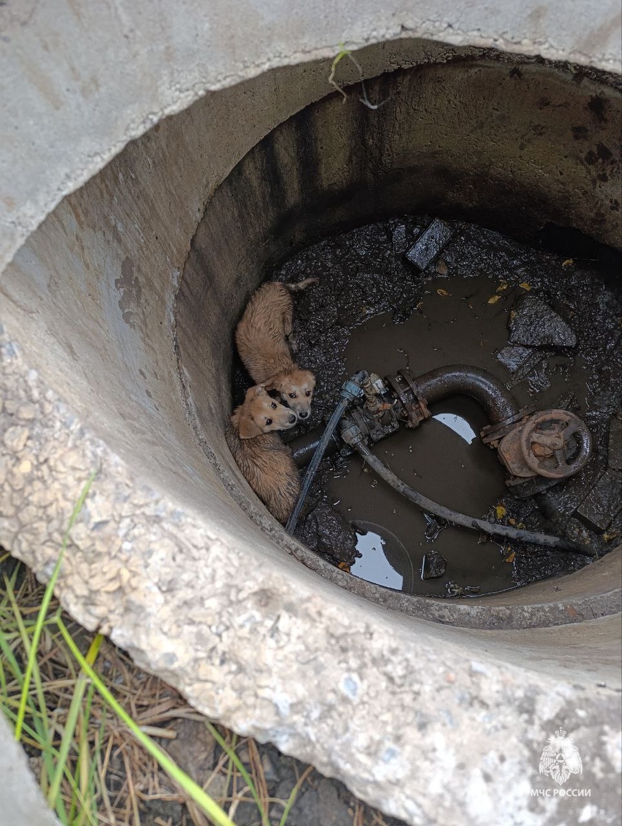 Сотрудники МЧС спасли двух щенков, провалившихся в колодец