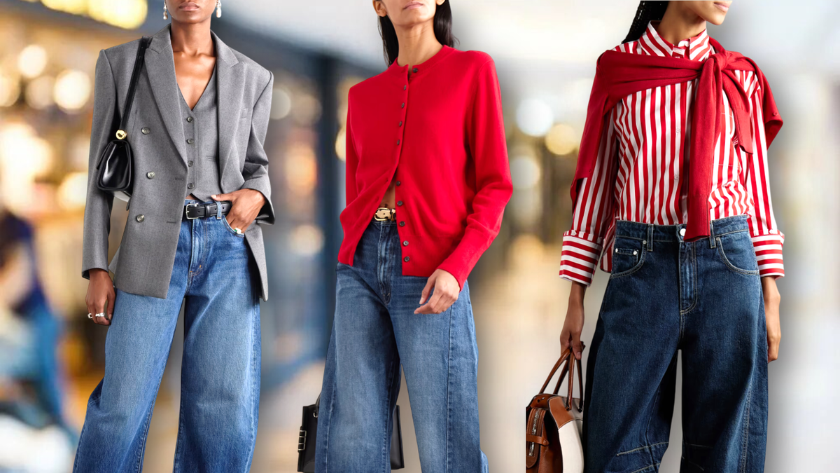 Кардиган должен быть тонким или средним, чтобы не добавлять объёма под пиджаком. Жакет выбирайте структурный: он собирает силуэт и уравновешивает свободный деним.