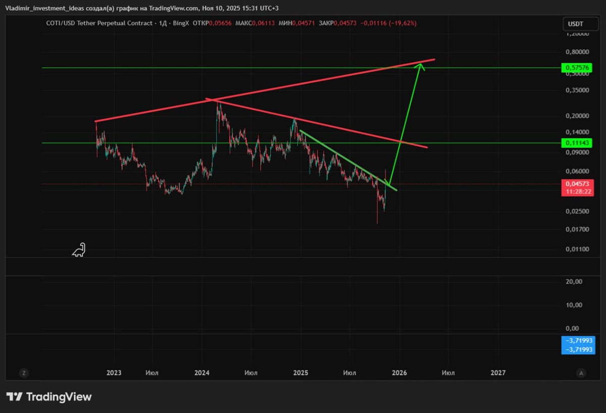 #COTI обратите внимание, пробой трендовой уже есть. Ищите точку входа на лонг. Ракетка будет. Спот можно однозначно, фьючерсы осторожно цели обозначил