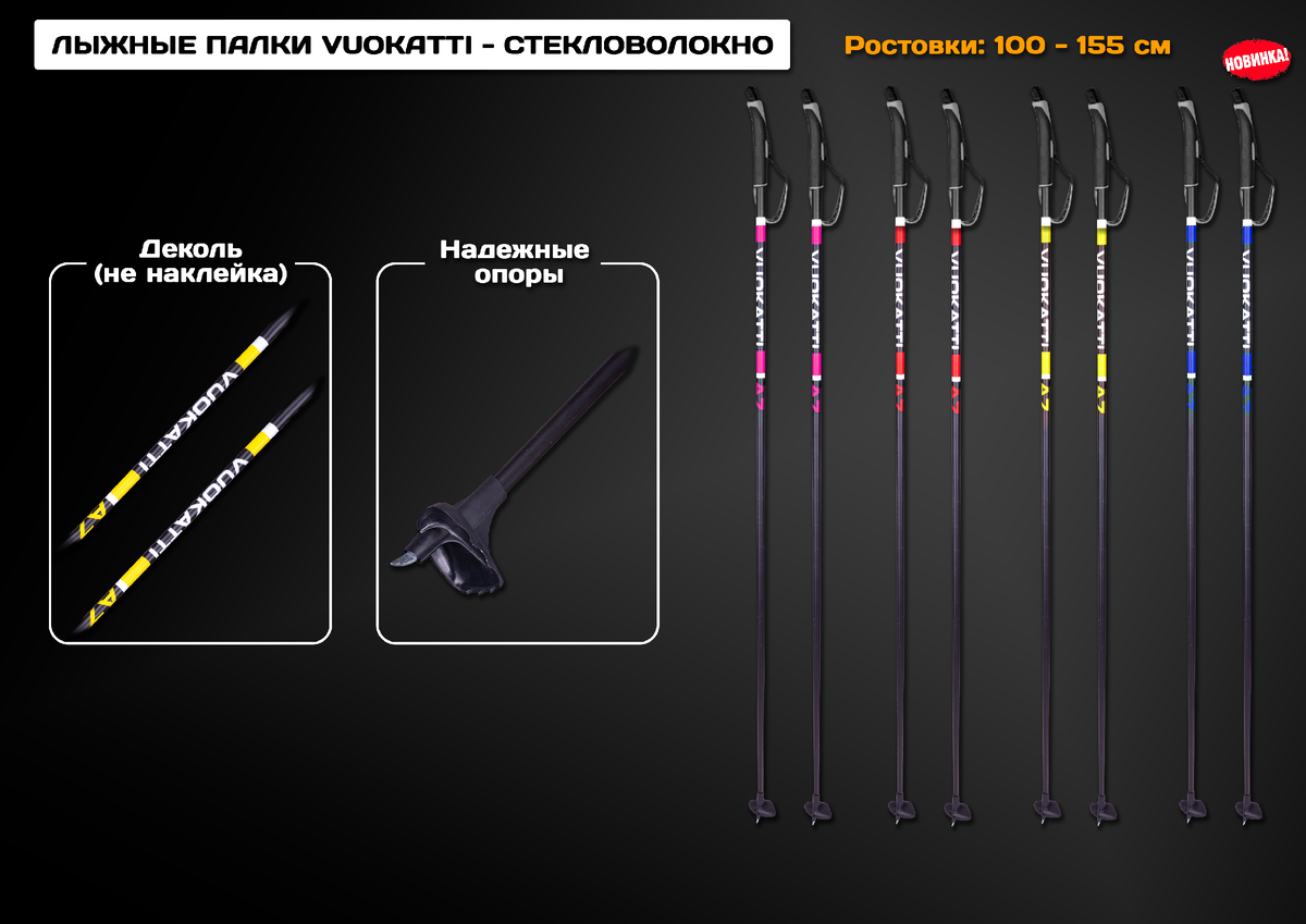 Если вы ищете лыжные палки, которые стильно выглядят, работают безотказно и не требуют переплаты — обратите внимание на VUOKATTI. Это торговая марка компании NovaSport, которая разрабатывает и изготавливает товары для тех, кто ценит сочетание современных материалов, продуманной эргономики и честной цены. В линейке есть модели для взрослых и детей в ростовках от 100 до 175 см, а также три варианта материалов на выбор: стекловолокно, алюминий и гибрид 35/65. Почему VUOKATTI — это удачный выбор Стиль: аккуратный, современный дизайн в ярких оттенках — палки гармонично смотрятся с любой лыжной экипировкой. Надёжность: усиленные ремешки, твёрдосплавные наконечники и прочные стержни, рассчитанные на российские зимы. Универсальность: все модели подходят и для классического, и для конькового хода — остаётся верно подобрать длину. Комфорт: эргономичные ручки и продуманный баланс помогают экономить силы и держать ритм. Доступность: честная цена без переплаты за бренд, при этом полноценная спортив