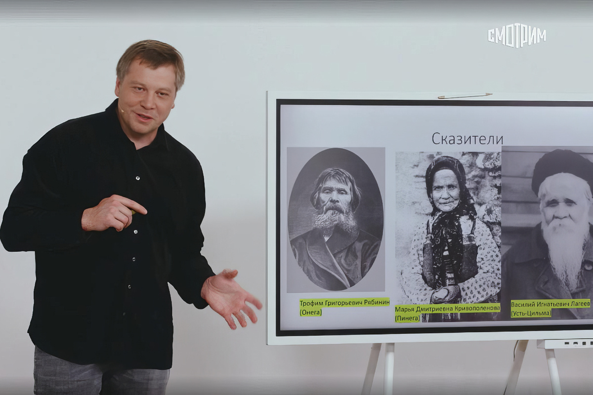 Одна из самых острых и парадоксальных тем, которую затрагивает лектор, — попытка советского государства придумать новый эпос — «новины». После того как фольклористы пришли к выводу, что былины создавались в крестьянской среде (идея, которая политически была чрезвычайно привлекательна для советской власти, опиравшейся на трудовой народ), возникла амбициозная задача: если народ в прошлом рассказывал о героических подвигах предков, почему бы не помочь ему рассказывать о подвигах советского настоящего?