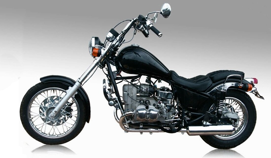 - Дизайн: Да, он скопирован с Harley-Davidson. Но скопирован как будто пьяным художником с фотографии, сделанной на кнопочный телефон. Зато свой, родной, узнаваемый. Низкая посадка, широкий руль, вынесенные вперед подножки - вроде всё как у "взрослых", но с щепоткой советского "пофигизма".