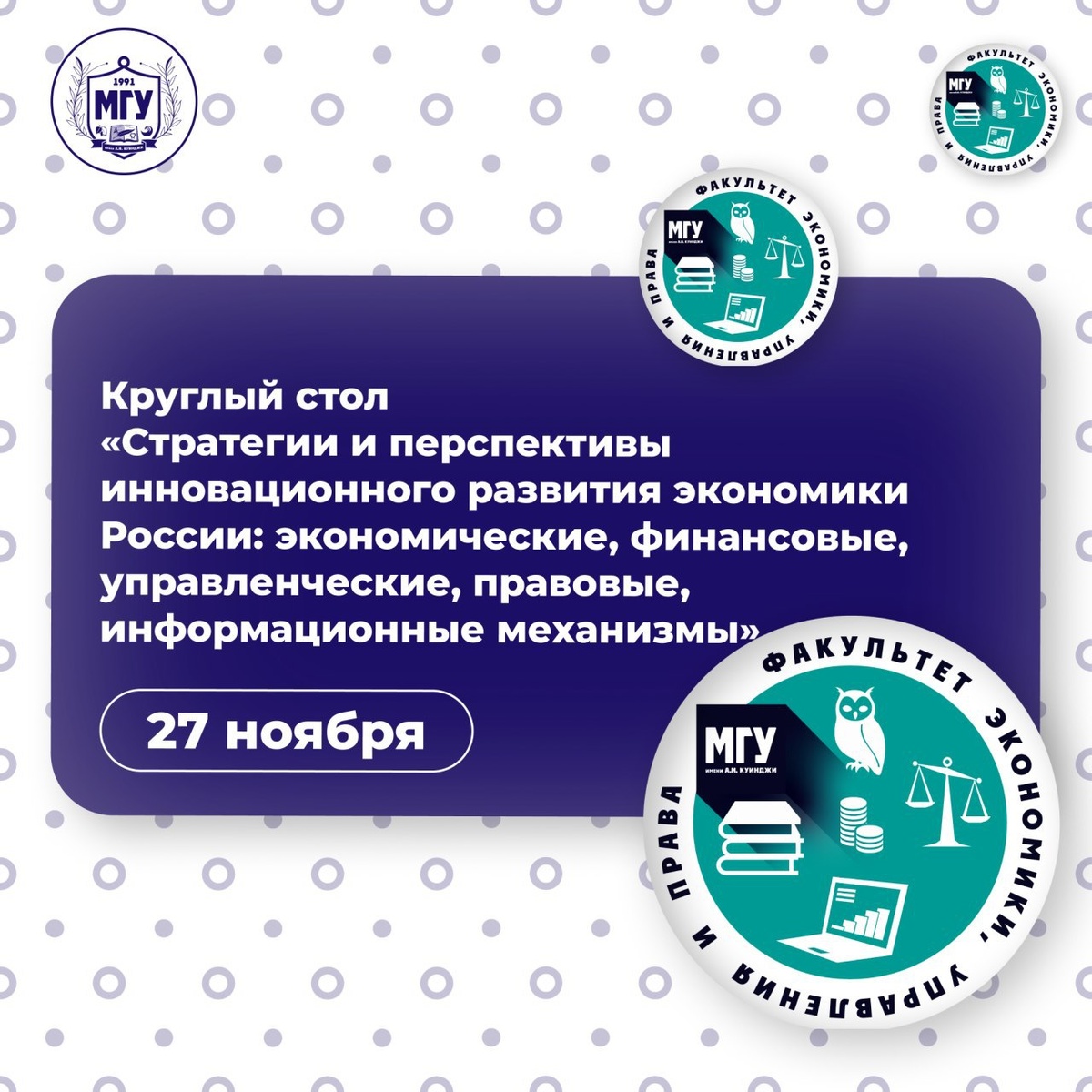 π€© π€©27 Π½ΠΎΡΠ±ΡΡ Π½Π° ΠΊΠ°ΡΠ΅Π΄ΡΠ΅ ΡΠΈΠ½Π°Π½ΡΠΎΠ² ΠΈ ΡΡΠ΅ΡΠ° ΡΠ°ΠΊΡΠ»ΡΡΠ΅ΡΠ° ΡΠΊΠΎΠ½ΠΎΠΌΠΈΠΊΠΈ, ΡΠΏΡΠ°Π²Π»Π΅Π½ΠΈΡ ΠΈ ΠΏΡΠ°Π²Π° ΠΠΠ£ ΠΈΠΌΠ΅Π½ΠΈ Π.Π. ΠΡΠΈΠ½Π΄ΠΆΠΈ ΡΠΎΡΡΠΎΠΈΡΡΡ ΠΊΡΡΠ³Π»ΡΠΉ ΡΡΠΎΠ» Π½Π° ΡΠ΅ΠΌΡ: Β«Π‘ΡΡΠ°ΡΠ΅Π³ΠΈΠΈ ΠΈ ΠΏΠ΅ΡΡΠΏΠ΅ΠΊΡΠΈΠ²Ρ ΠΈΠ½Π½ΠΎΠ²Π°ΡΠΈΠΎΠ½Π½ΠΎΠ³ΠΎ ΡΠ°Π·Π²ΠΈΡΠΈΡ ΡΠΊΠΎΠ½ΠΎΠΌΠΈΠΊΠΈ Π ΠΎΡΡΠΈΠΈ: ΡΠΊΠΎΠ½ΠΎΠΌΠΈΡΠ΅ΡΠΊΠΈΠ΅, ΡΠΈΠ½Π°Π½ΡΠΎΠ²ΡΠ΅, ΡΠΏΡΠ°Π²Π»Π΅Π½ΡΠ΅ΡΠΊΠΈΠ΅, ΠΏΡΠ°Π²ΠΎΠ²ΡΠ΅, ΠΈΠ½ΡΠΎΡΠΌΠ°ΡΠΈΠΎΠ½Π½ΡΠ΅ ΠΌΠ΅Ρ