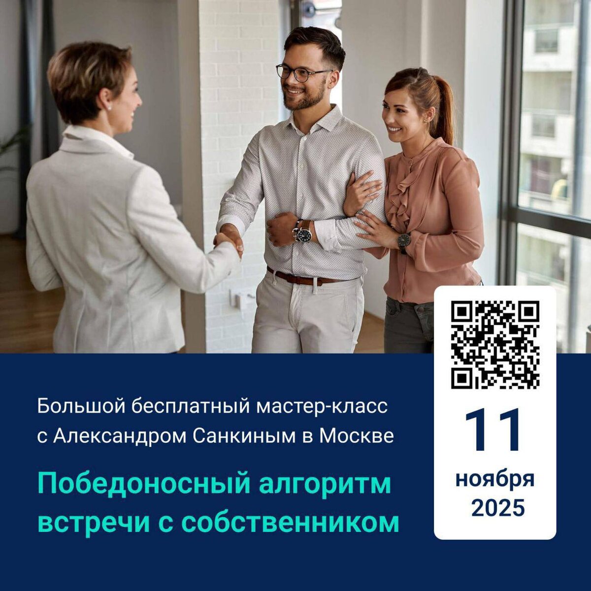 Уже завтра, 11-го ноября состоится большой очный бесплатный мастер‑класс нашего амбассадора Александра Санкина для риэлторов «Победоносный алгоритм встречи с собственником»! Программа мероприятия: • 5 способов поиска клиентов; • Назначение и проведение встреч с собственниками; • Работа с возражениями; • Маркетинг объектов; • Как вести торги на повышение; • Правила закрытия и приёма задатка; • Работа с покупателями по продаже объектов; • Способы развития уверенности агента. 📆Время проведения: 11 ноября (вторник) с 14:00 до 18:00 📍Место проведения: Москва, ул. Большая Татарская, д. 42. Онлайн трансляции не будет. Только живое очное участие, без записи! Бесплатно. Вход свободный! Прокачайте свои навыки, пересоберите мышление и выведите доход на новый уровень! Количество мест ограничено! Успей записаться 👉 https://sankin.pro/bbmc-11-11-moscow