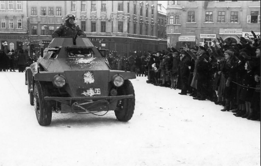 Более богатые трофеи были получены советской армией в течении 1941-1942 гг. Бои на восточном фронте проходили с особым ожесточением и нередко Sd.Kfz.221\222 действовали на острие наступления, в том числе в качестве машин поддержки пехоты. Вполне естественно, что при таком раскладе потери были очень большими – только по официальным данным в период с 1 июля 1941-го по 1 апреля 1942-го года было потеряно 159 машин всех типов, не считая побывавших в ремонте. Сколько среди них стало советскими трофеями сказать затруднительно, поскольку летом-осенью 1941 года скрупулёзный подсчет попросту не вёлся. Тем не менее, можно смело говорить о нескольких десятках легких бронеавтомобилей, часть которых находилась в строю до 1943 года включительно. Более того, один из Sd.Kfz.221 (с установленной на нём импровизированной конической башней вместо штатной) был использован в фильме «Непобедимые», посвященного защитникам Ленинграда и вышедшим на экраны в 1943 году. По всей видимости, после войны все трофейные машины были разобраны на металл.