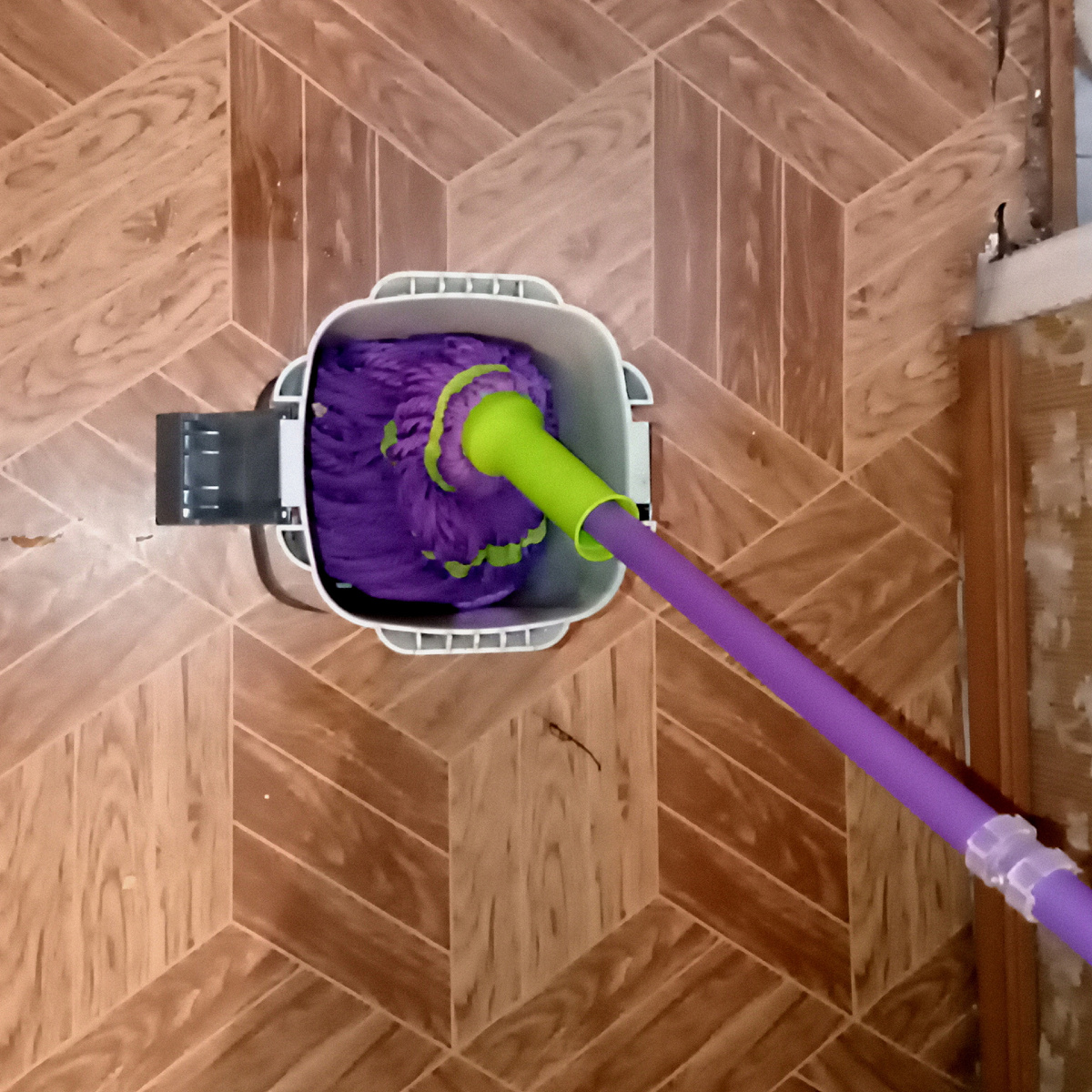 - На этот раз «героями» стали швабра и ведро, обнаружившие идеальную совместимость друг с другом.