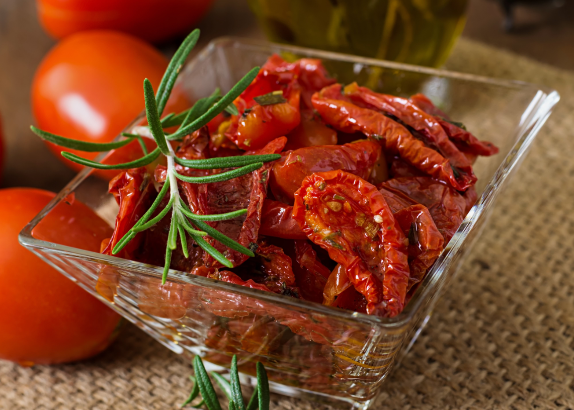 Вяленые помидоры — это популярная закуска, пришедшая к нам из Италии. В жаркие летние дни на Апеннинском полуострове хозяйки традиционно сушат помидоры на керамических крышах, позволяя солнцу делать свое дело в течение нескольких дней. Этот процесс позволяет томатам потерять большую часть влаги, сохраняя при этом все полезные вещества. Эта закуска изобилует фолиевой кислотой, которая благоприятно влияет на мозг, и магнием, способствующим нормализации работы нервной системы.