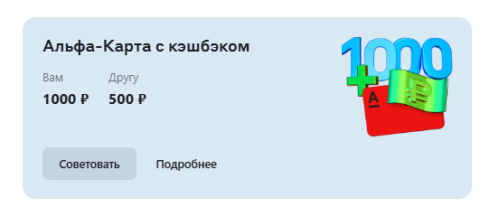 У Альфы есть программа «Приведи друга» — это когда вы оформляете карту по ссылке от друга, и за это оба получаете бонус.