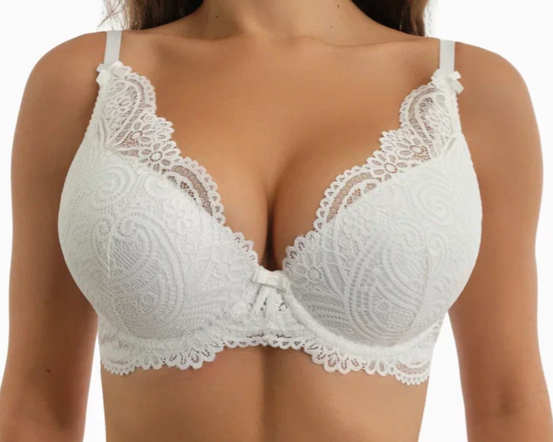 Если вы ищете идеальное сочетание комфорта, красоты и уверенности — обратите внимание на этот классический кружевной бюстгальтер с формованной чашкой и эффектом push-up. Он создан для того, чтобы подчеркнуть естественные линии тела и придать груди соблазнительный объём без ощущения стеснения. Мягкое кружево с изящным цветочным узором выглядит невероятно романтично и при этом остаётся приятным к телу — никакого раздражения, только комфорт и лёгкость. Эластичный трикотаж обеспечивает плотное, но мягкое прилегание, подчёркивая форму и не ограничивая движения.