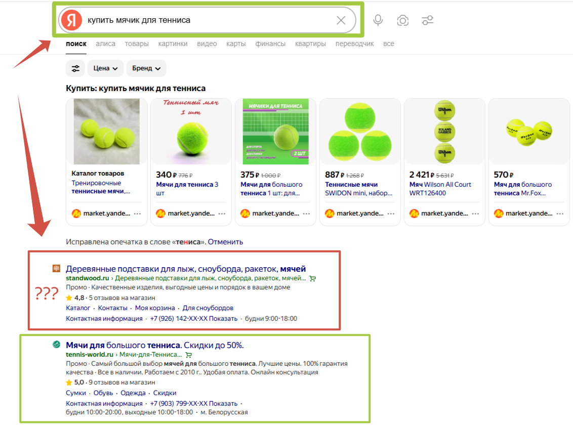 А для Яндекса это критически важно: чем выше кликабельность (CTR), тем лучше система показывает рекламу — дешевле, чаще и выше позиций конкурентов. Релевантность — это соответствие объявления запросу пользователя. Когда человек ищет «купить кухню на заказ в Москве», он хочет видеть именно это, а не «Мебель для дома» или «Качественные решения для интерьера».