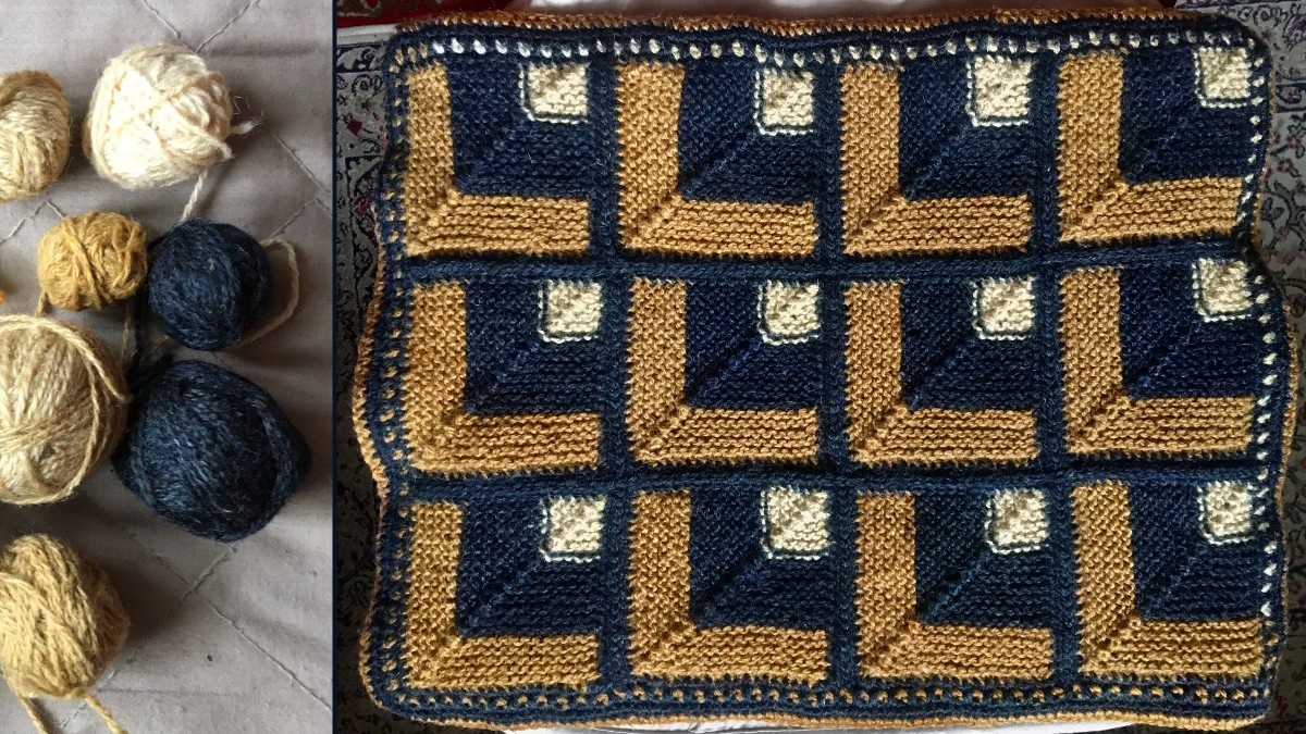 Когда есть остатки пряжи, сочетающиеся по цвету и фактуре, и их достаточное для изделия количество, можно пофантазировать на тему лоскутной мозаики из вязаных элементов. Пэчворк с использованием кусочков тканей в моде, так почему бы не применить его идеи в вязании?! Продолжаю тему мозаики из квадратов, связанных на спицах, начатую в статье «Сидушки для стульев из остатков пряжи». На этот раз – строгая геометрия и спокойное цветовое решение, подходящие для пледа, покрывала. Мне, правда, еле-еле хватило ниток на лежанку для кота размером 45 см х 35 см, постелить на холодный подоконник, где кот любит смотреть вдаль. Но при желании и наличии пряжи, например оставшихся от нескольких изделий мотков, по описанной технологии получится и большое изделие.