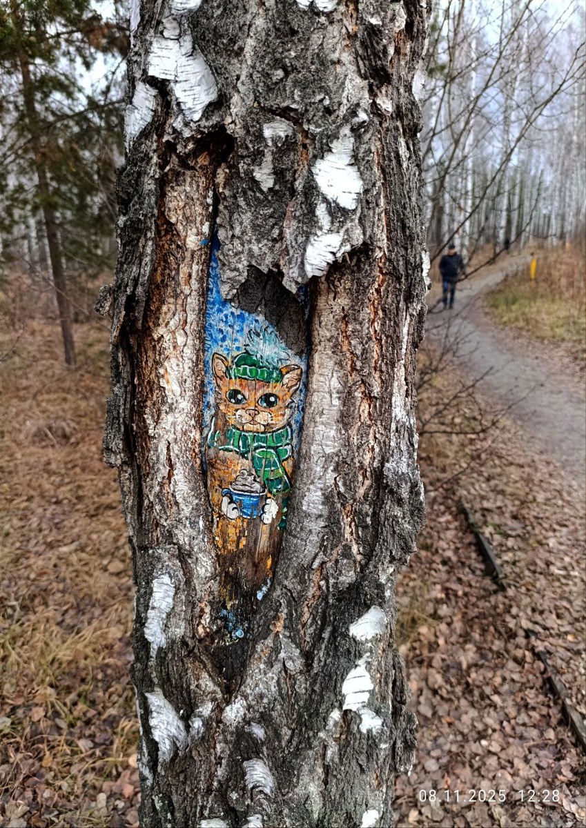 ☀️В выходные гуляли по эко-тропе недалеко от дома. 🌲Особое внимание привлекли деревья, на стволах которых неизвестный художник выполнил рисунки! 🎨 Как вам такое творчество?