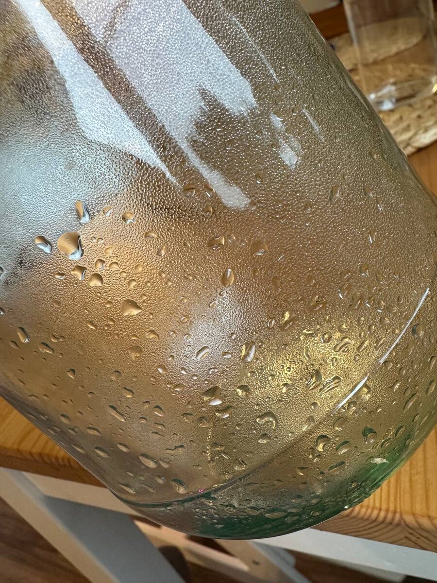На днях переливала гидролат лаванды в другую емкость. Посмотрите, сколько эфирного масла осталось на стенках 🤩 Большие капли - это оно 💧 Вместе с тем, что снимала в начале получилось около 2 мл домашнего эфирного масла лаванды☘️