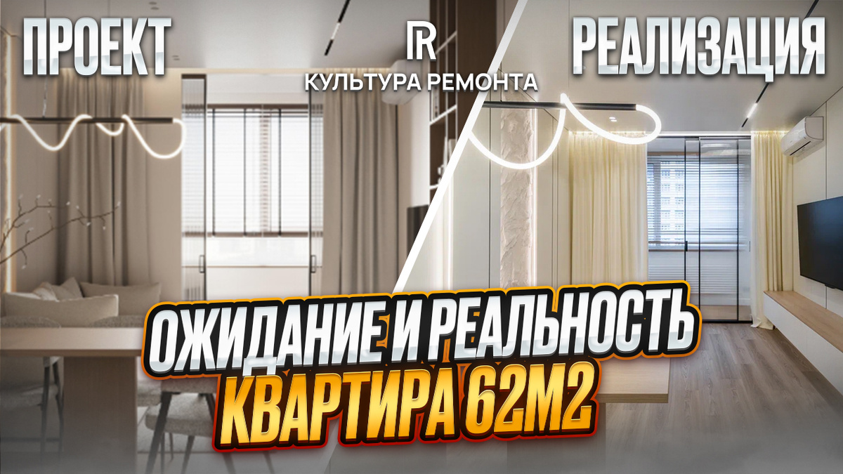Завершили ремонт квартиры в ЖК Анкудиновский парк в Нижнем Новгороде. давайте посмотрим, как было изначально в дизайн-проекте, и как получилось по итогу. Пространство разделили на три зоны, как и планировалось. Лоджию превратили в кабинет за стеклянными раздвижными дверями. Сделали гипсокартонную конструкцию с подсветкой, нишу под декоративную штукатурку и аккуратно спрятали кондиционер над телевизором. На кухне получилось всё компактно и без лишних деталей: фартук из керамогранита без швов, вся техника встроенная. Вытяжку убрали в стену, а снизу тумбы и у плинтуса сделали подсветку. Здесь положили на пол керамогранит, выровняли стены. Главный элемент — декоративная конструкция с зеркалом, нишами и светом — получился точно по проекту. Видео Ожидание/Реальность здесь: https://dzen.ru/video/watch/6911ed5dbee3845d704d1dac В детской комбинировали обои, краску и декоративные панели. Организовали рабочее место, поставили стильный радиатор и удобное бра. В спальне стены покрасили и сделали