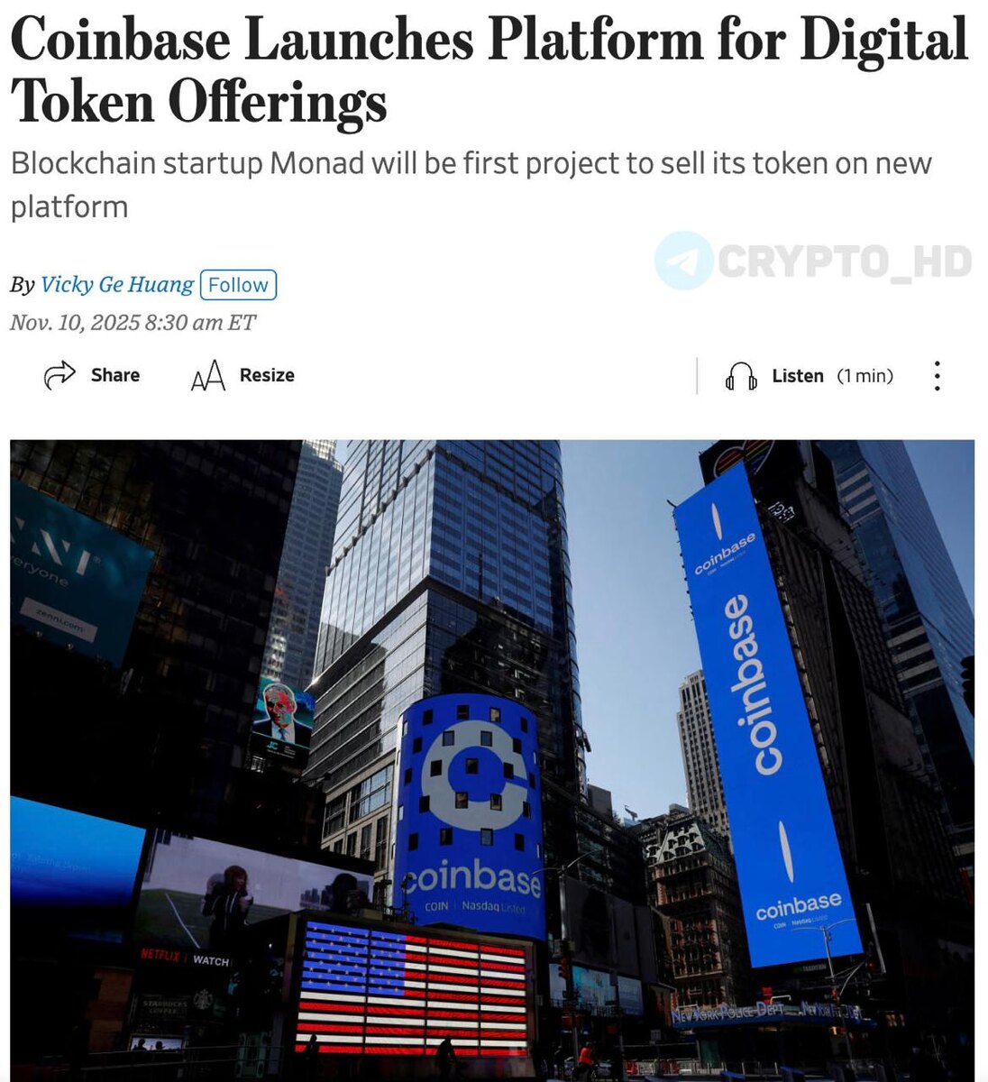 🇺🇸 #MON Биржа Coinbase запускает аналог IPO для криптовалютных проектов – WSJ